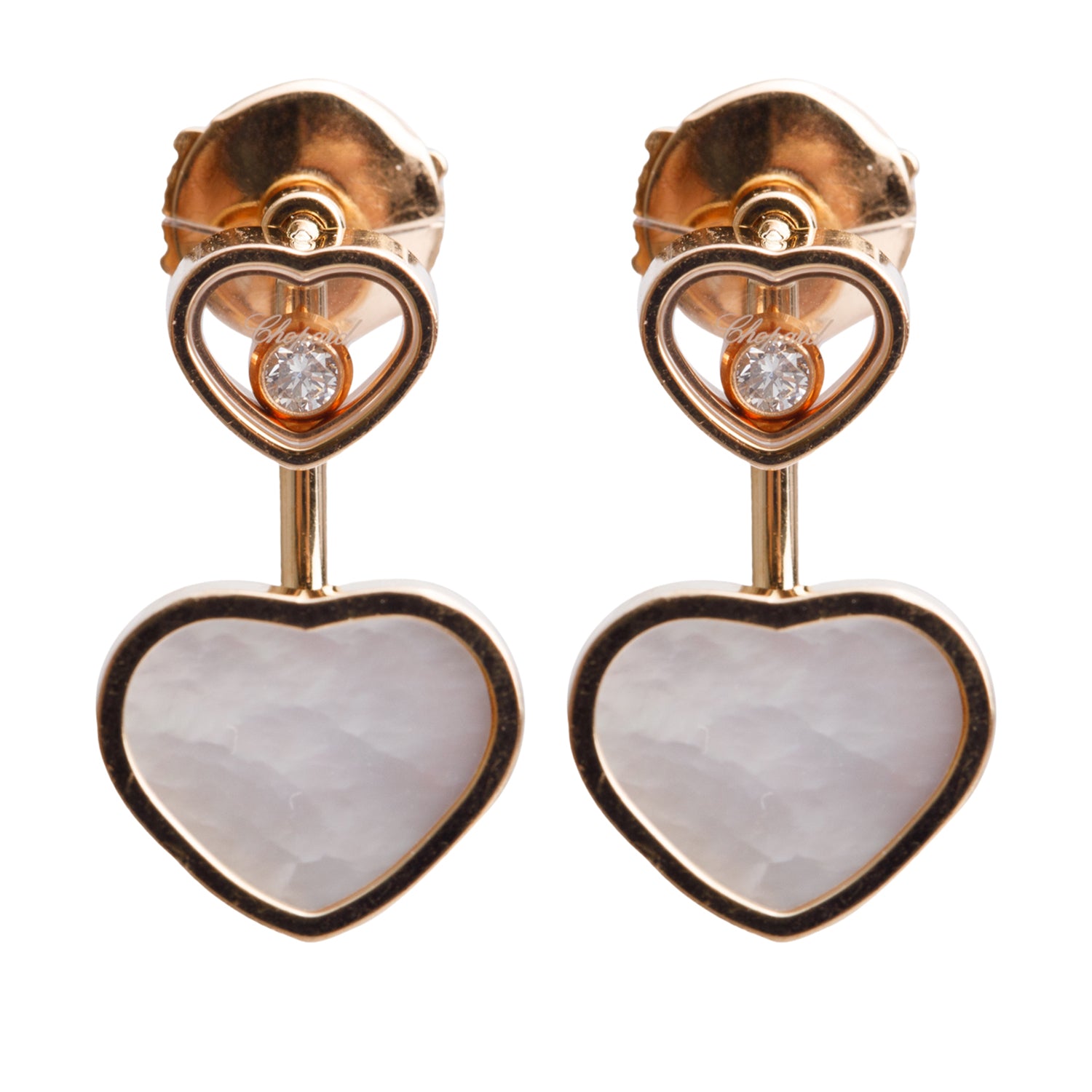 18k Rose Gold Diamond Happy Hearts Drop Earrings