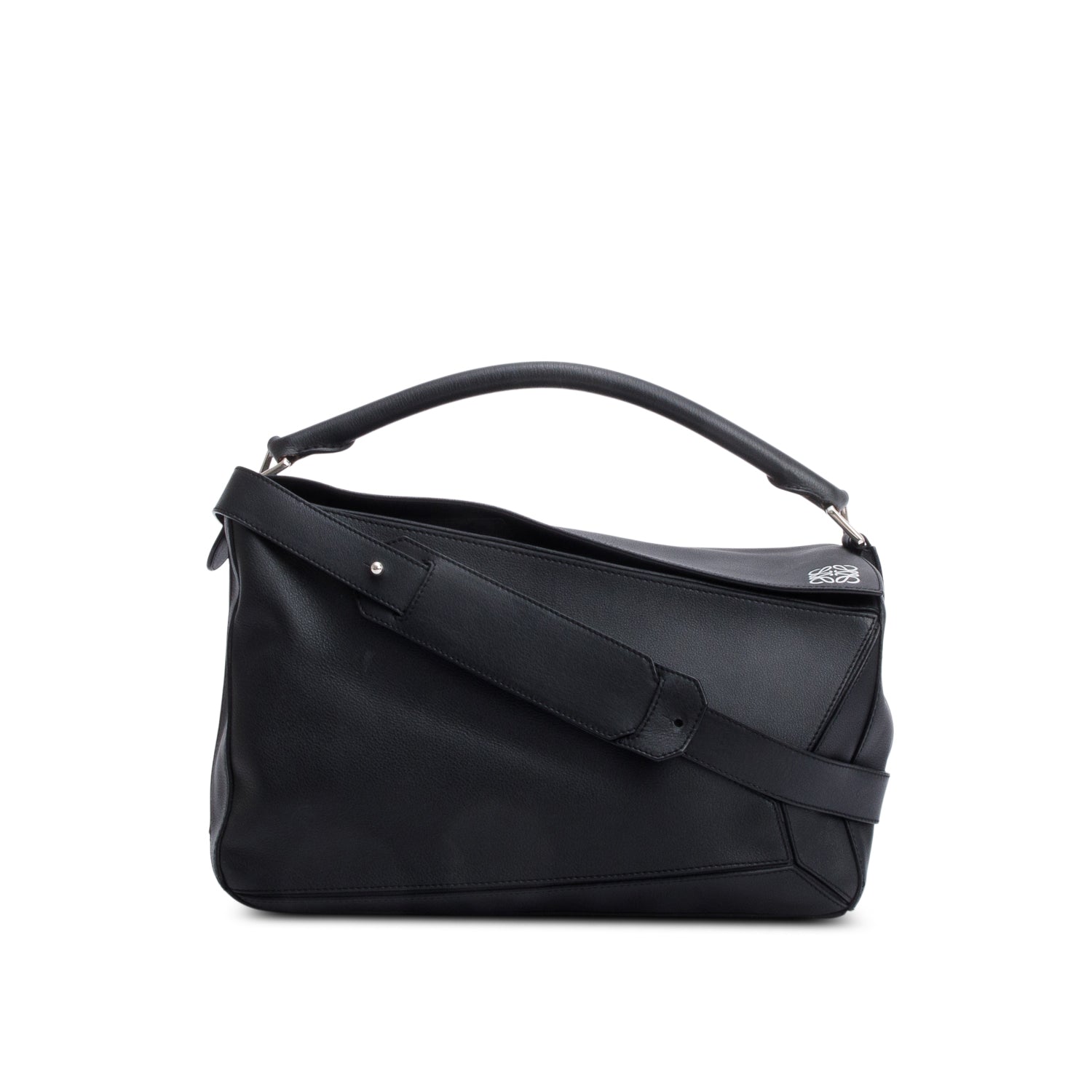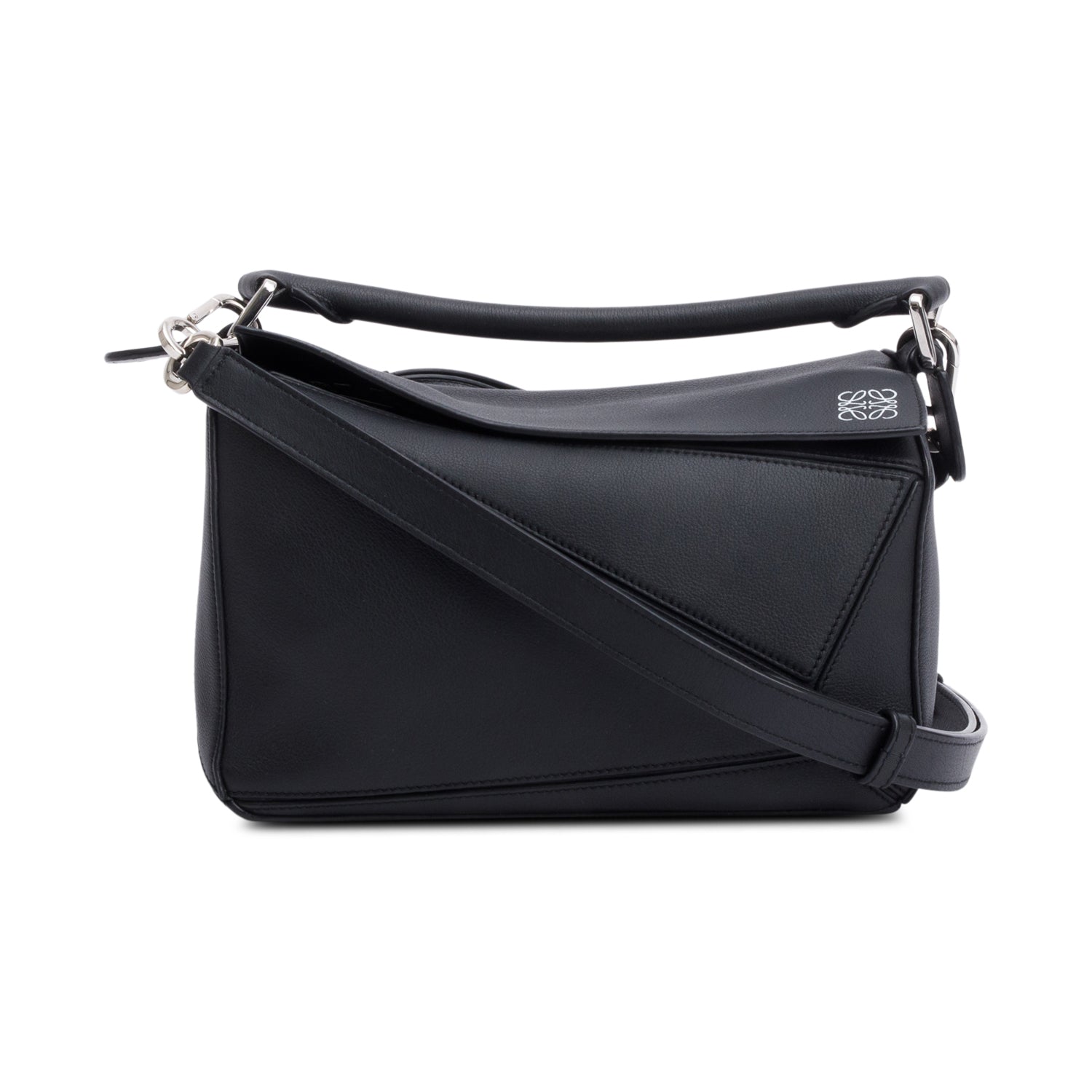 Black Calfskin Leather Small Puzzle Edge Bag w/ Strap