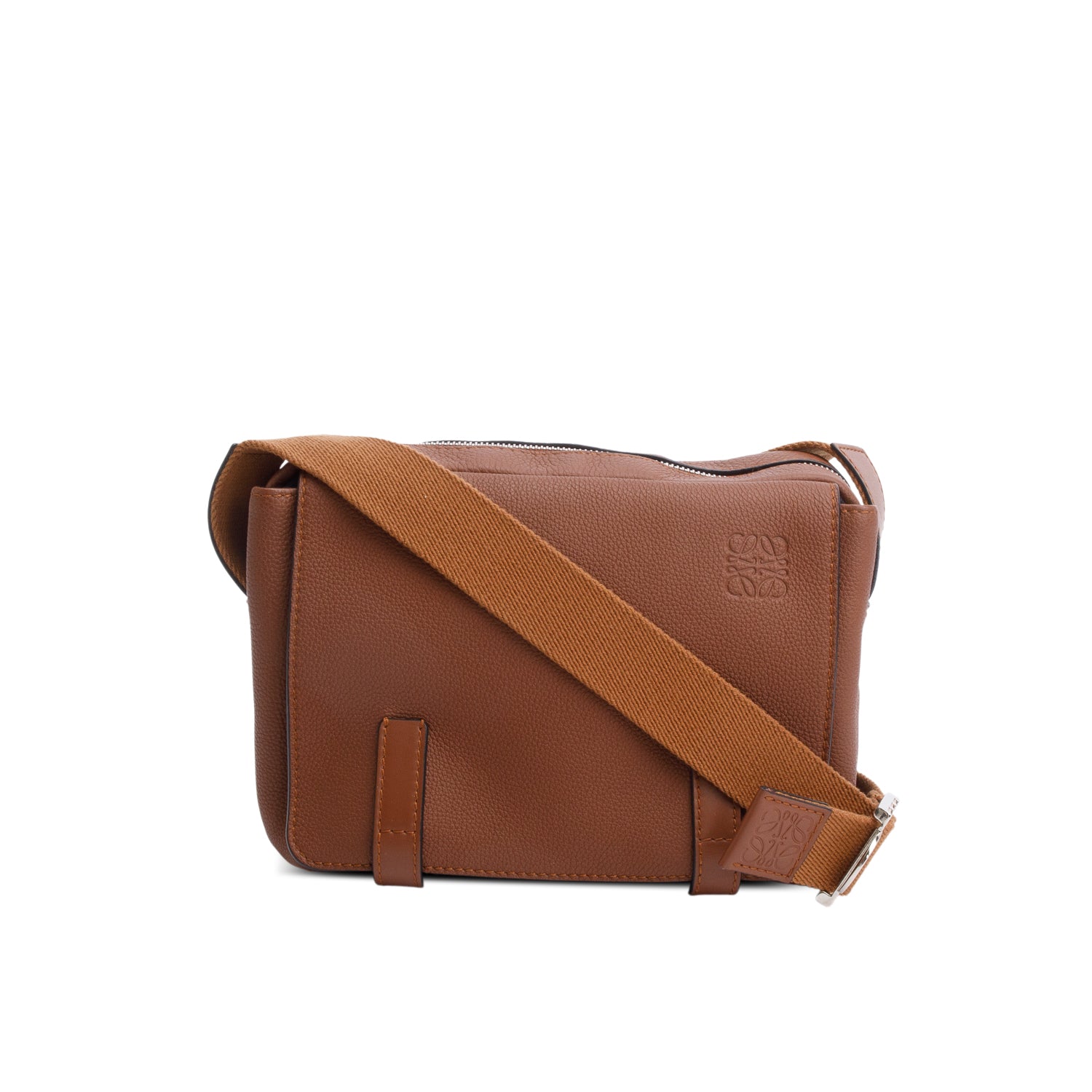 Black Supple Smooth Leather Jacquard XS Military Messenger Bag