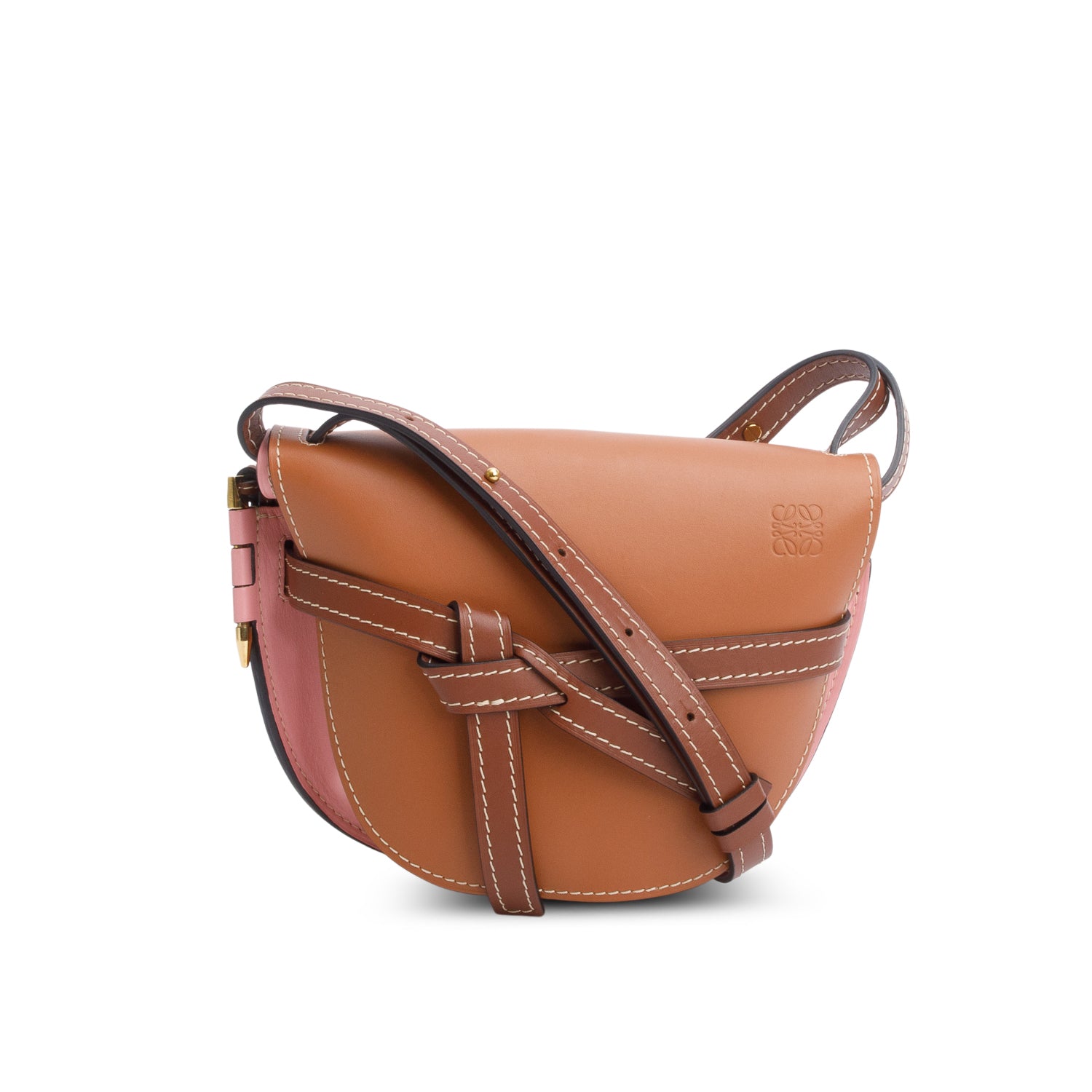 Brown & Pink Calfskin Small Gate Crossbody Bag