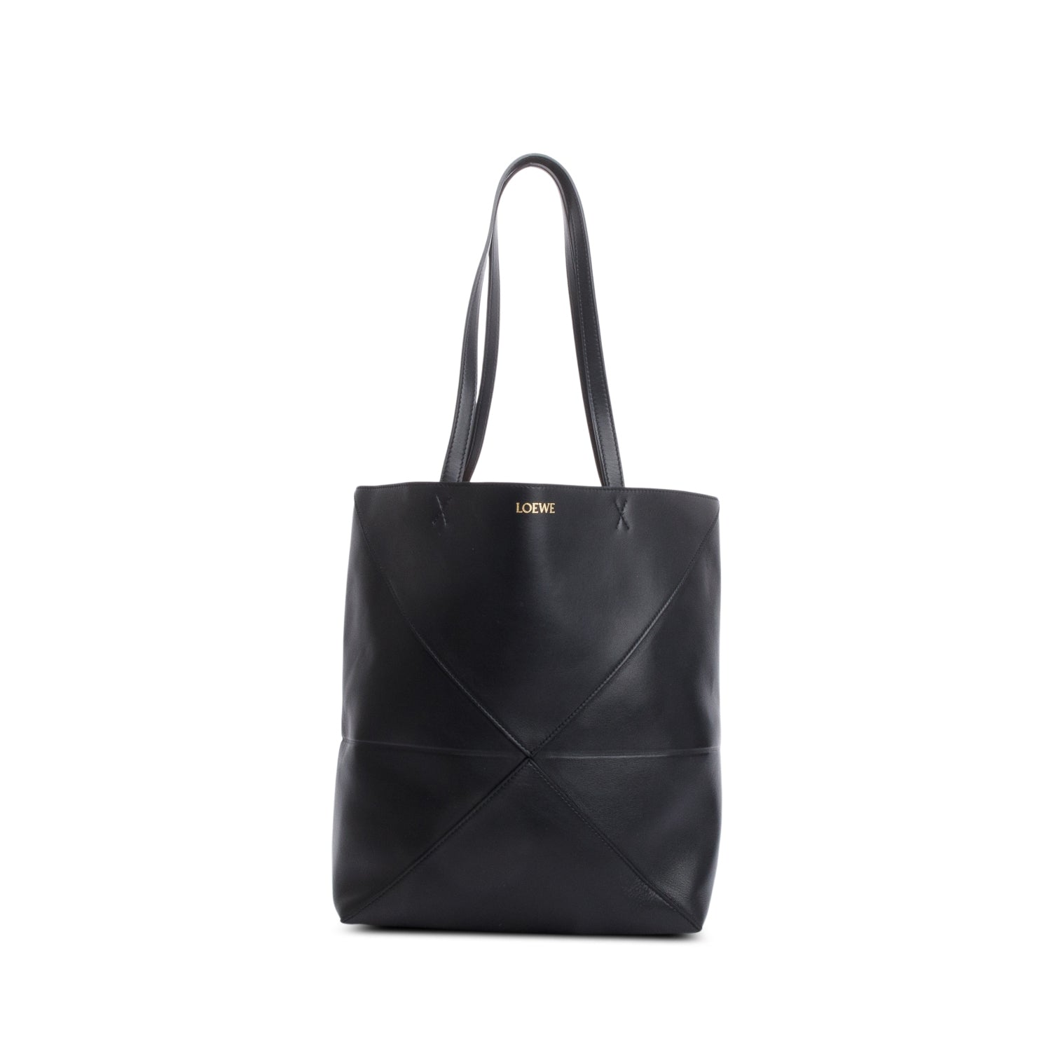 2024 Black Shiny Calf Leather Medium Puzzle Fold Tote