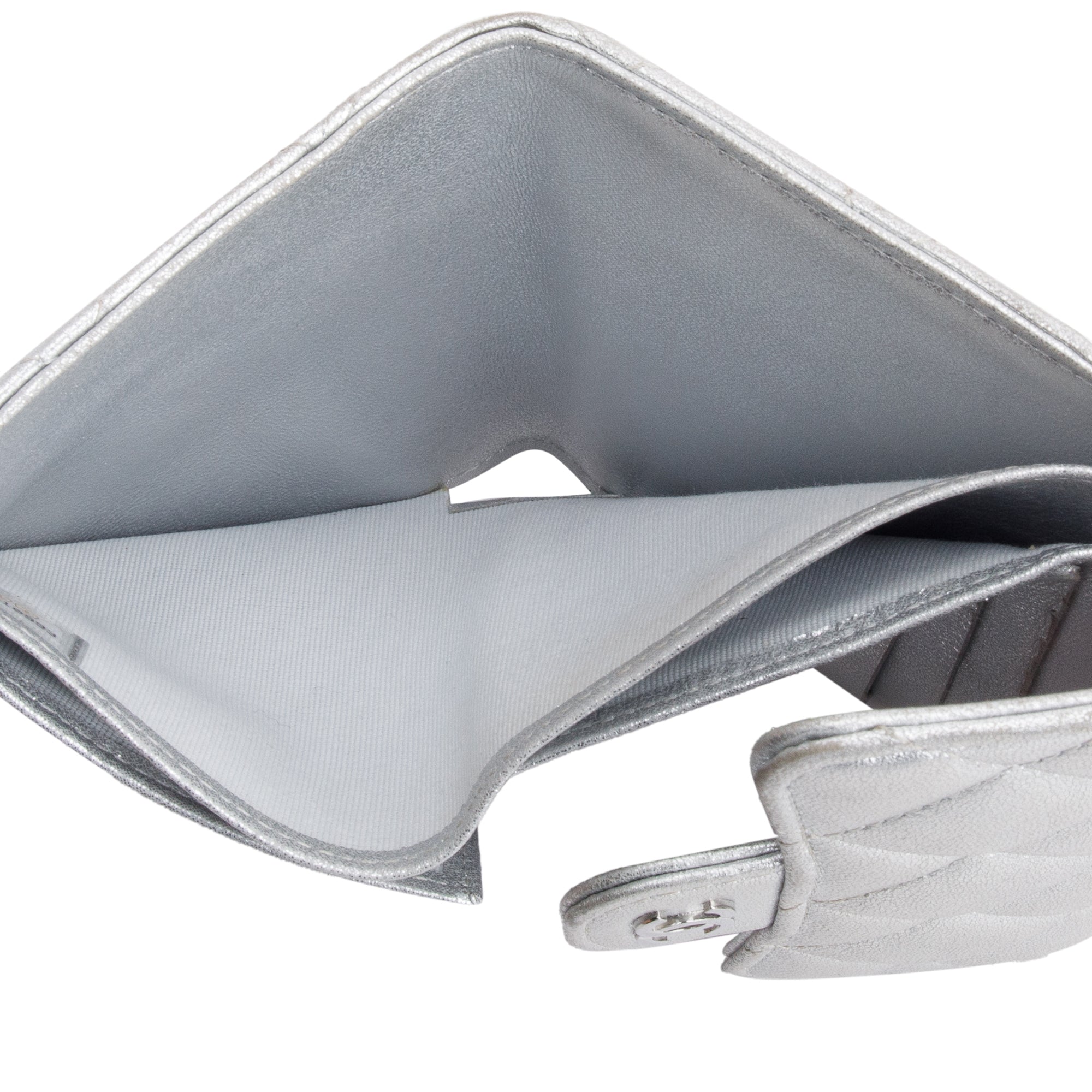 2021 Silver Metallic Quilted Lambskin Leather Compact Wallet