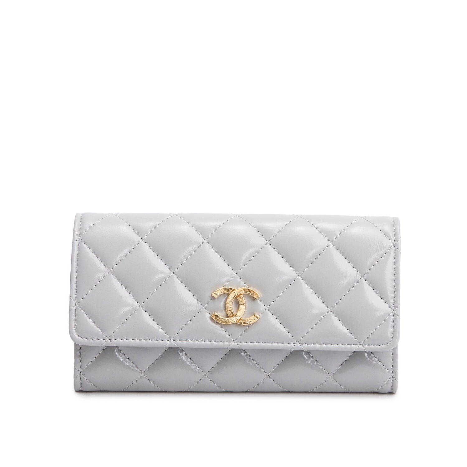 Grey Shiny Calfskin Leather Classic Small Flap Wallet w/ Box