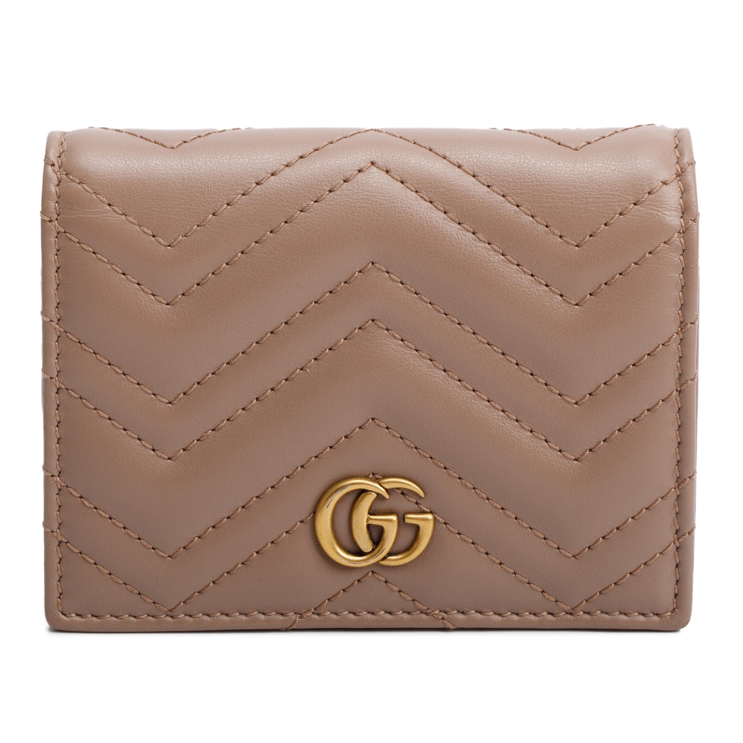 Beige Quilted GG Marmont Leather Card Case Wallet w/ Box