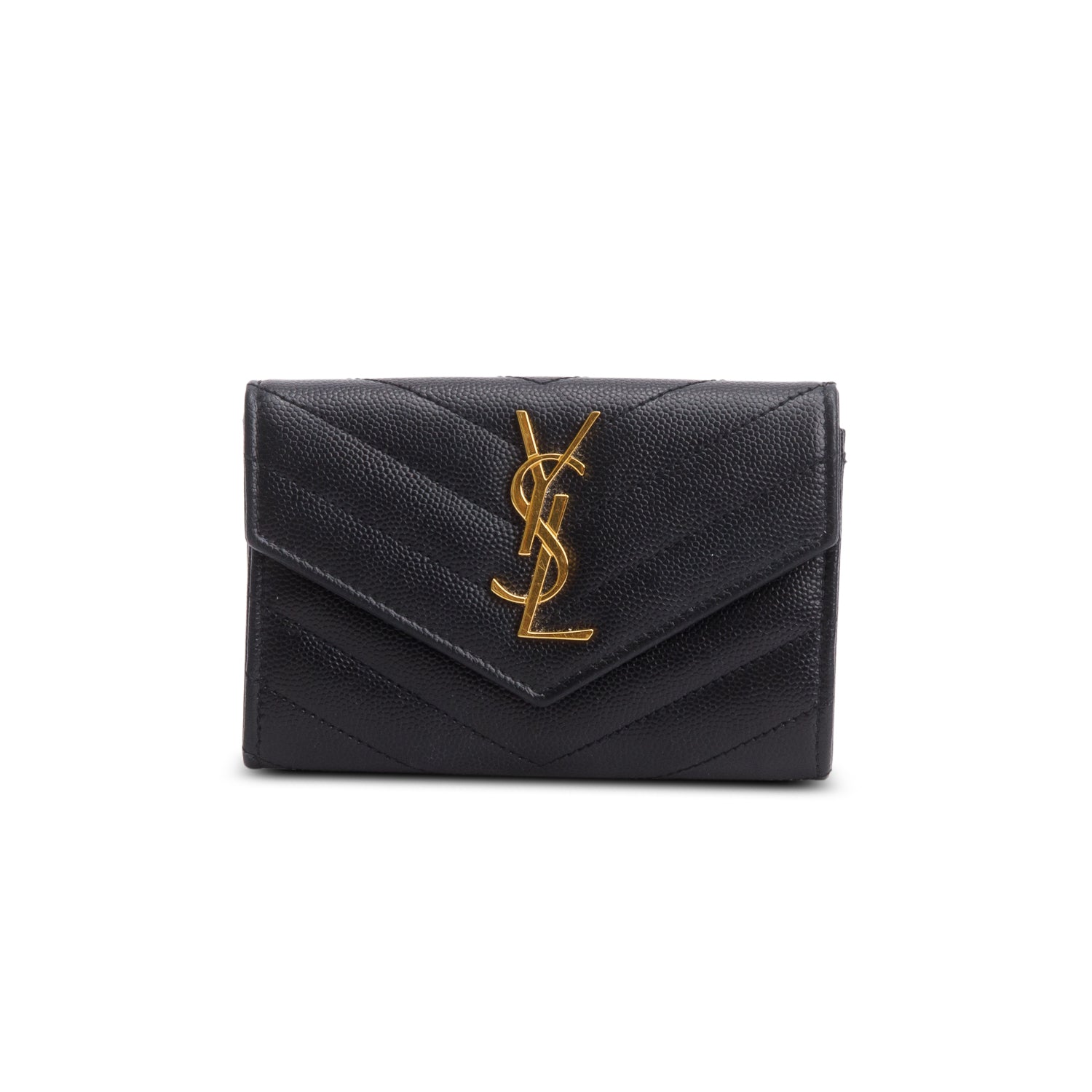 2020 Black Grain De Poudre Cassandre Matelasse Small Envelope Wallet w/ Box