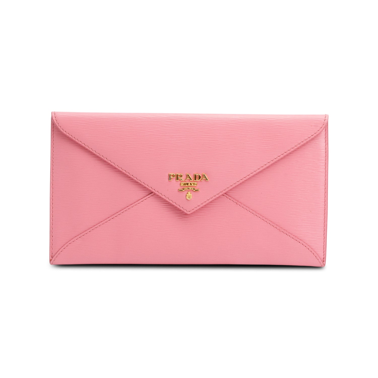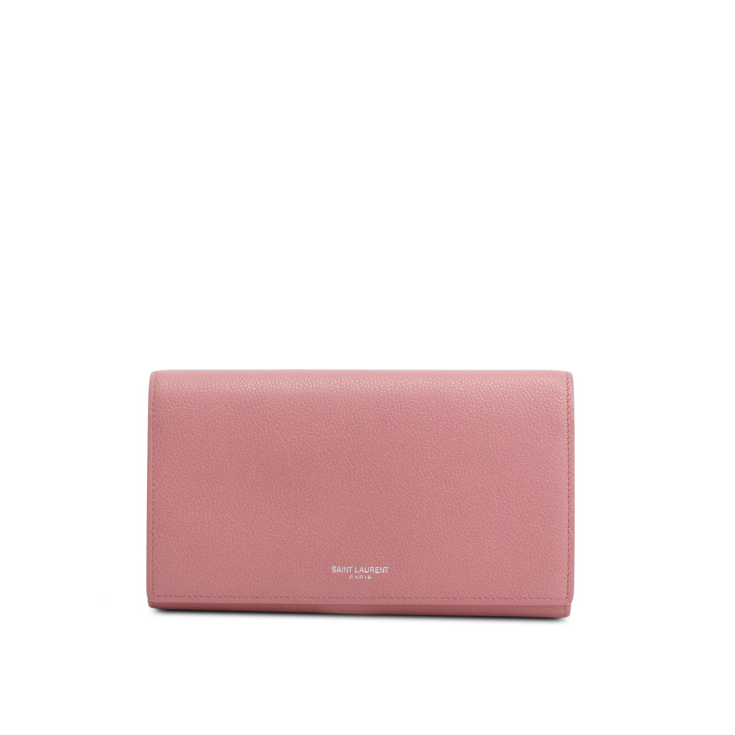Pink Vitello Move Leather Compact Tri-Fold Wallet