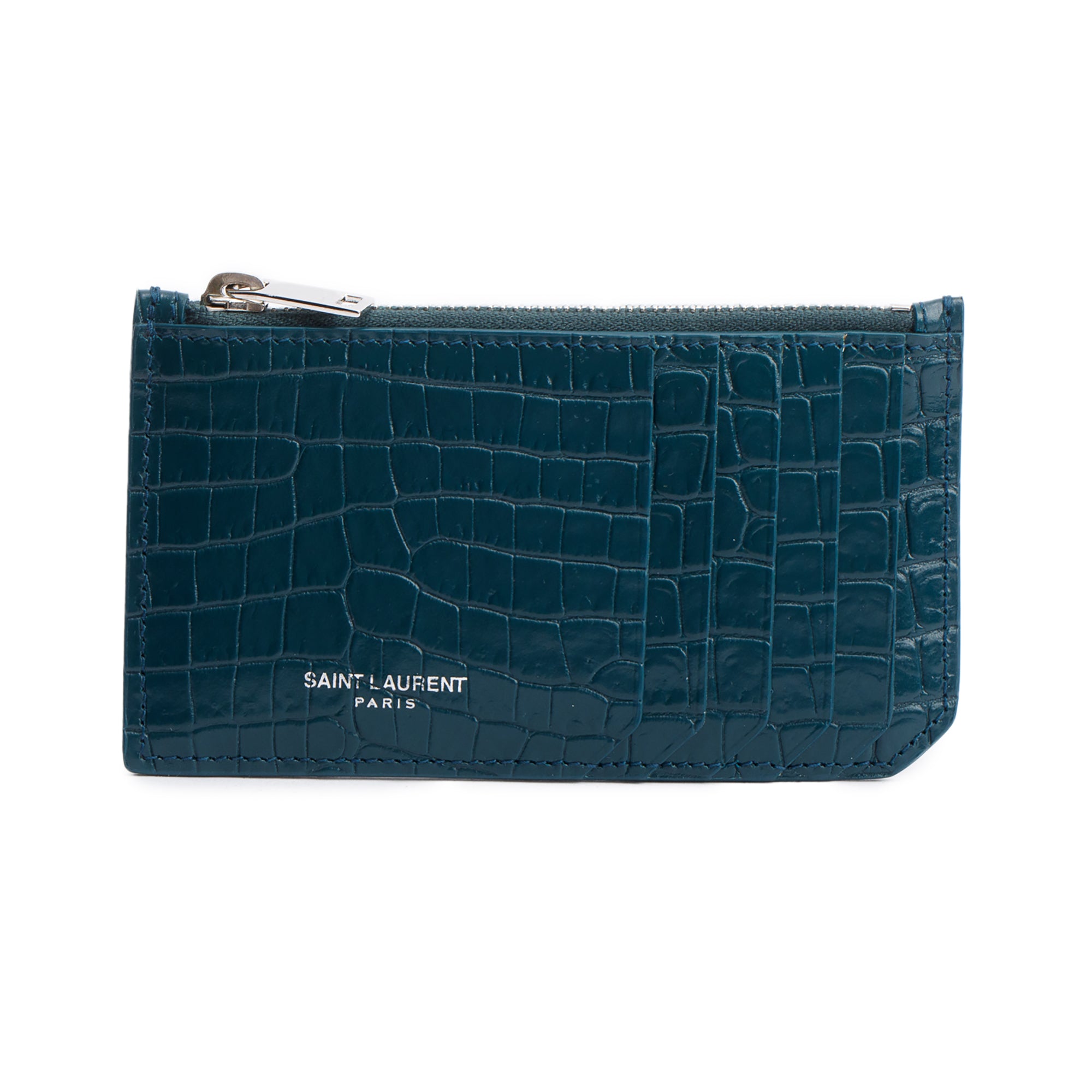 Green Crocodile-Embossed Leather Cassandre Fragments Zipped Card Case