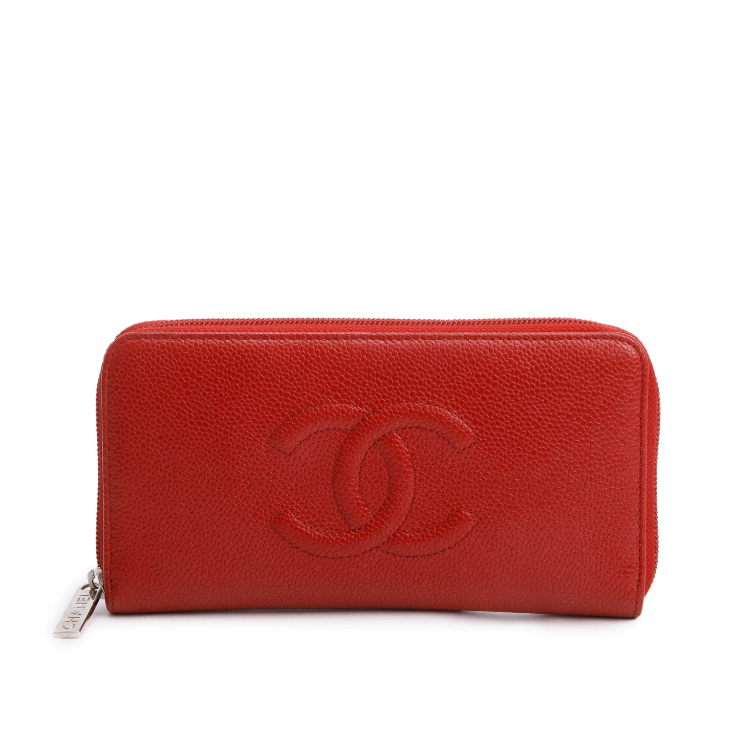 Red Caviar Leather Timeless CC Continental Zip Wallet w/ Box & Authenticity Card