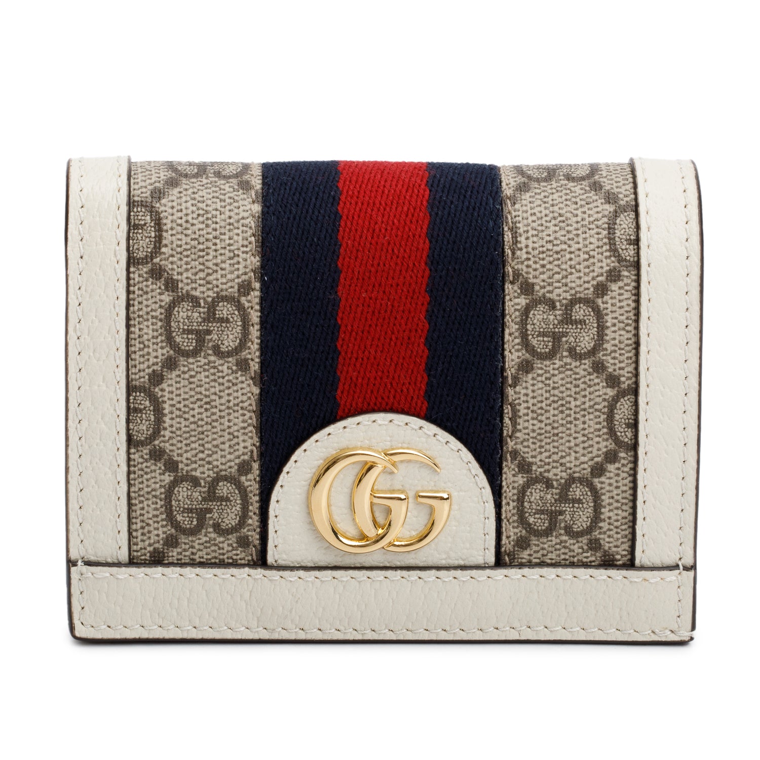 White Ophidia GG Supreme Canvas Card Case Wallet w/ Box