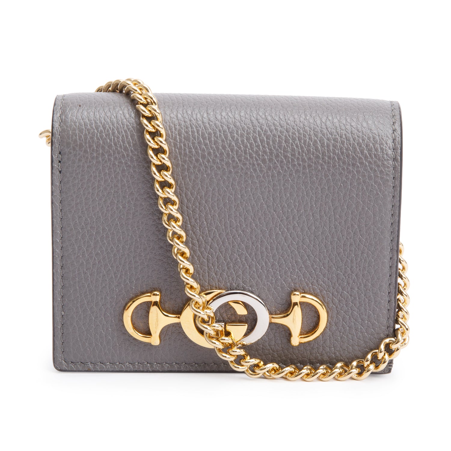 Grey Calfskin Leather Zumi Chain Card Case Wallet w/ Box