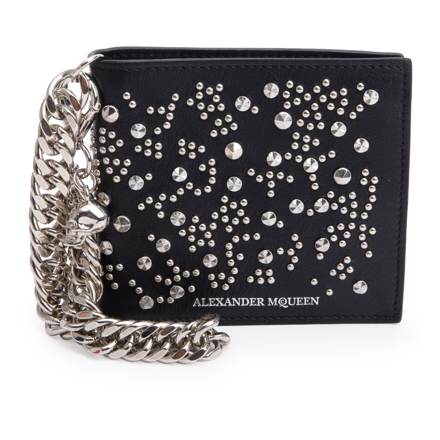 Black Calfskin Leather White Spike Rockstud Zippered Wallet