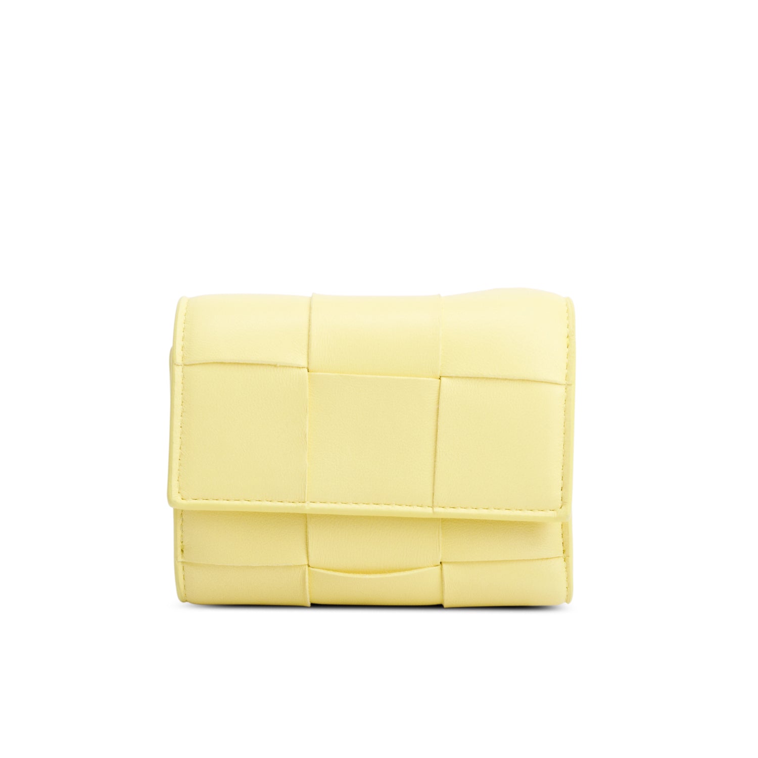Yellow Intreccio Nappa Leather Cassette Tri-Fold Zip Wallet w/ Box