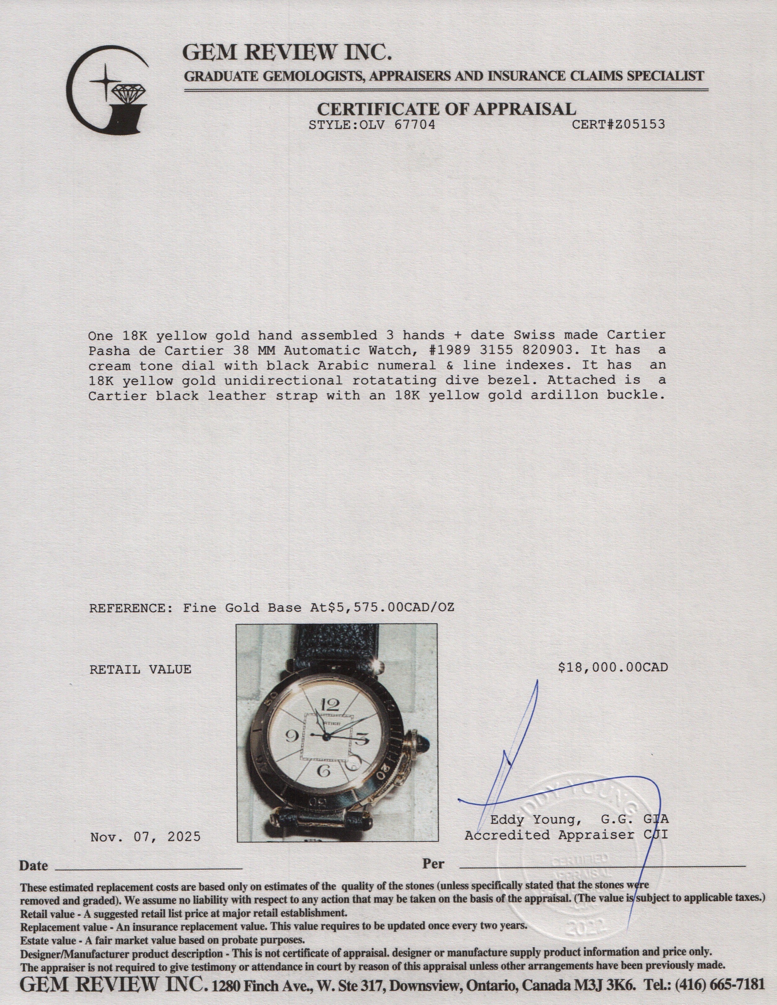 18k Yellow Gold Pasha de 38 MM Automatic Watch 1989