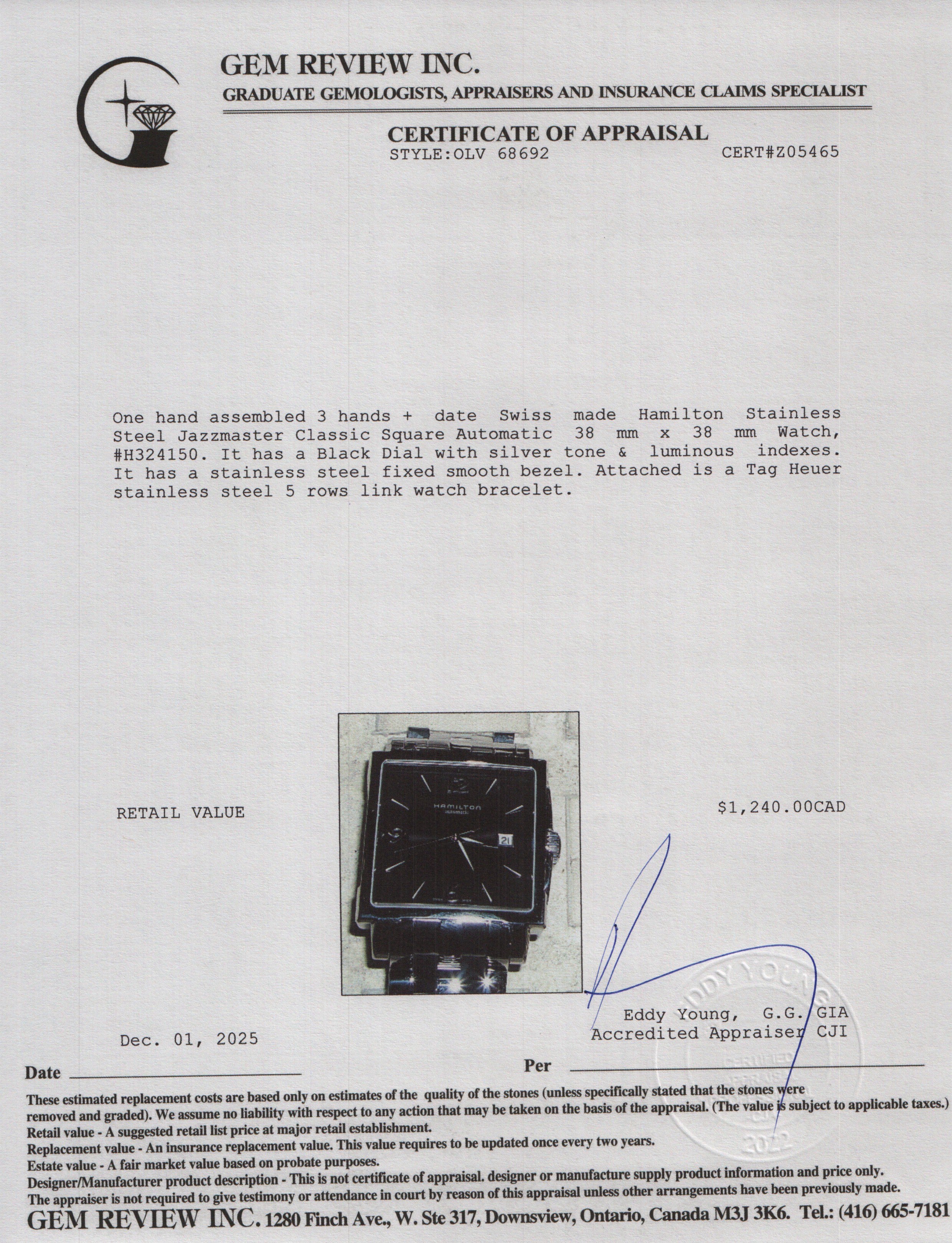Stainless Steel Jazzmaster Classic Square Automatic Watch H324150 Black Dial