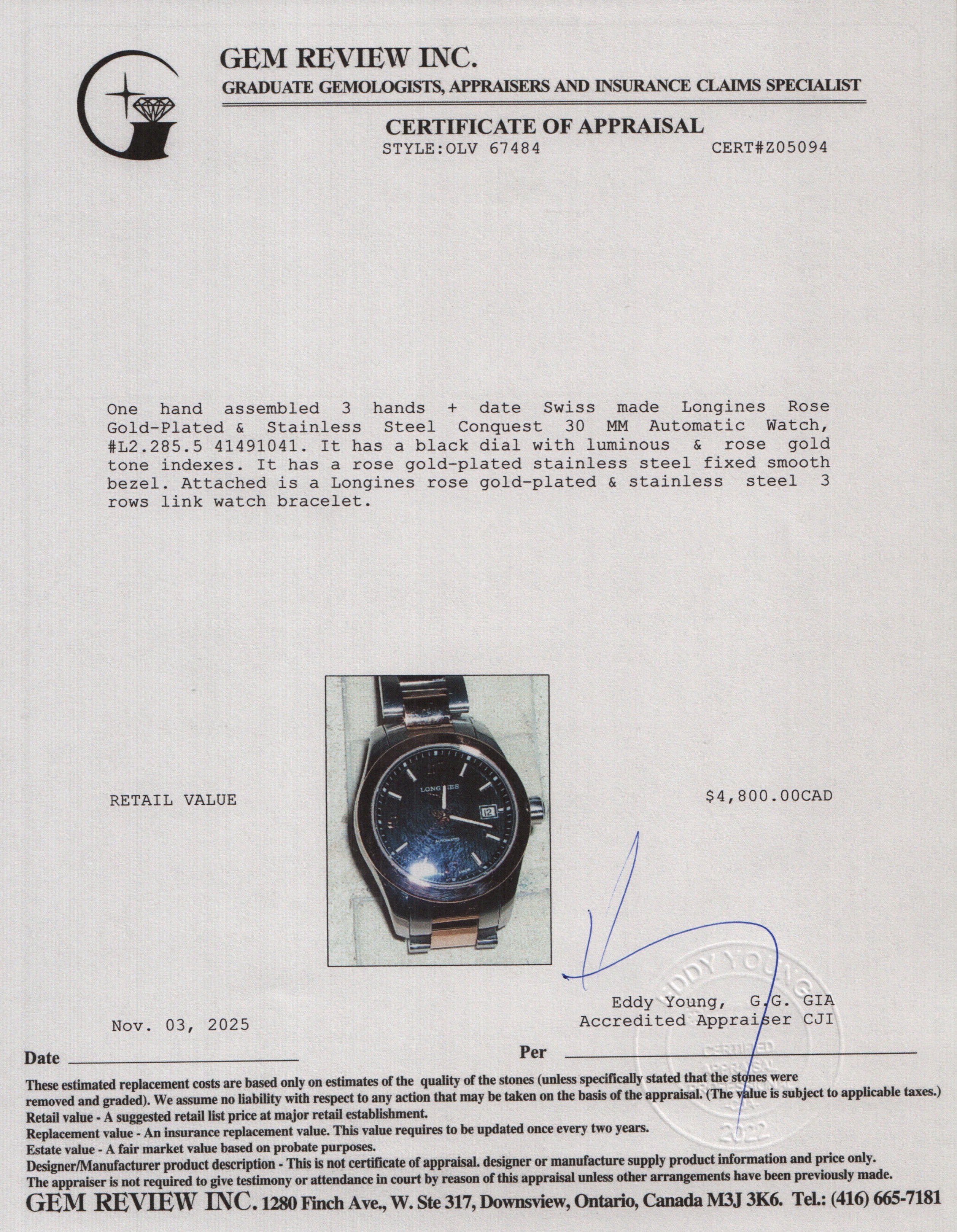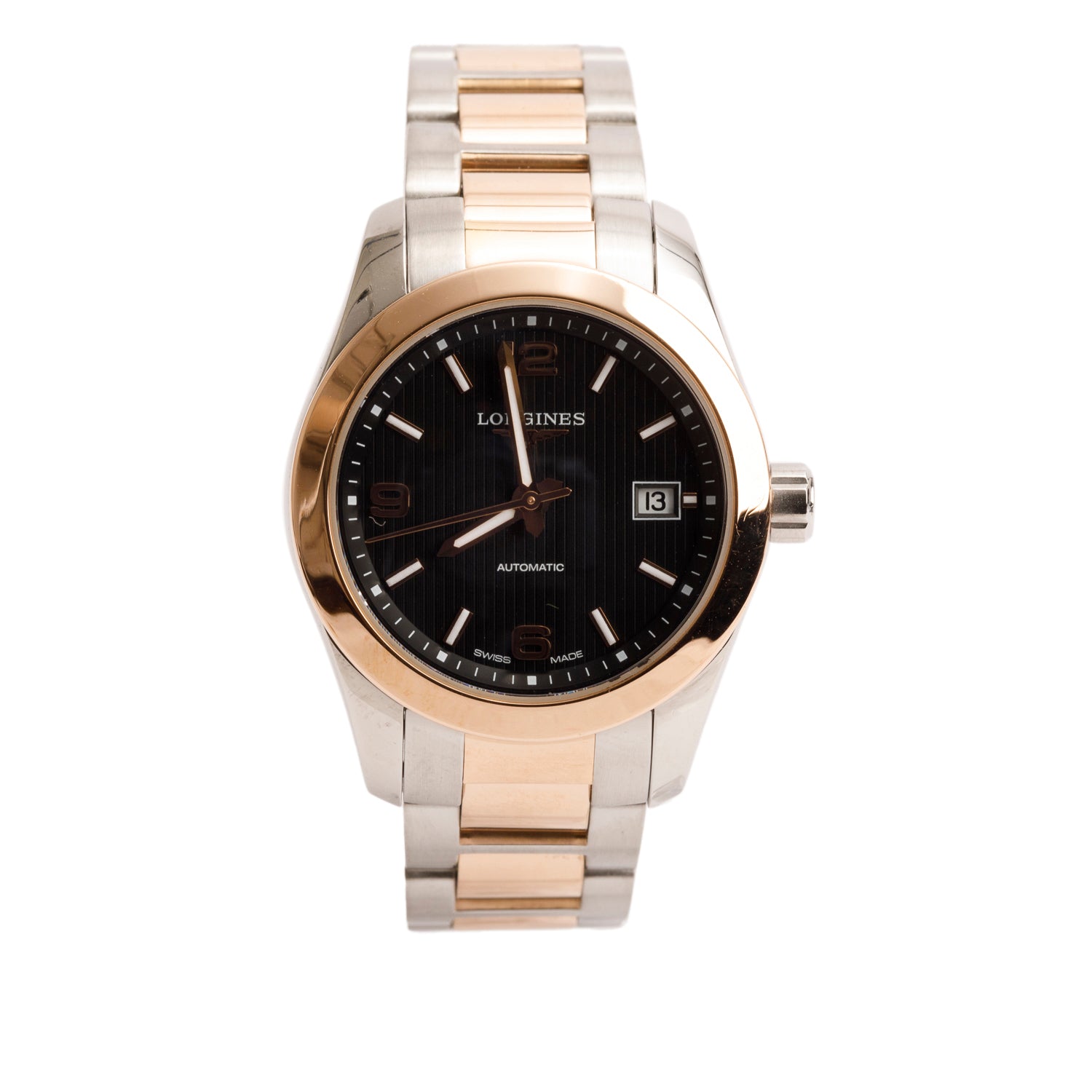 Rose Gold-Plated & Stainless Steel Conquest 30 MM Automatic Watch Black Dial