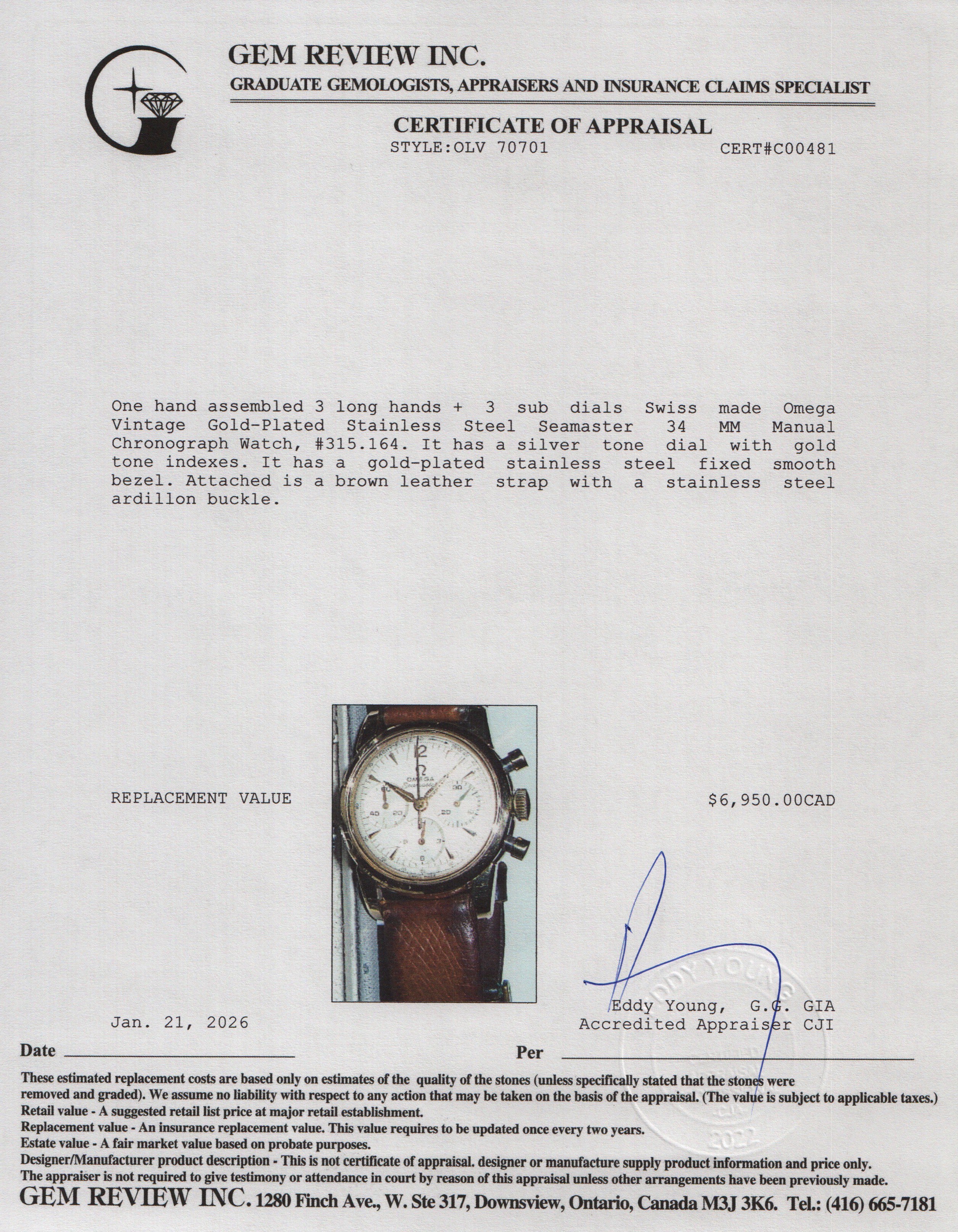 Vintage Gold-Plated Stainless Steel Seamaster 34 MM Manual Chronograph Watch