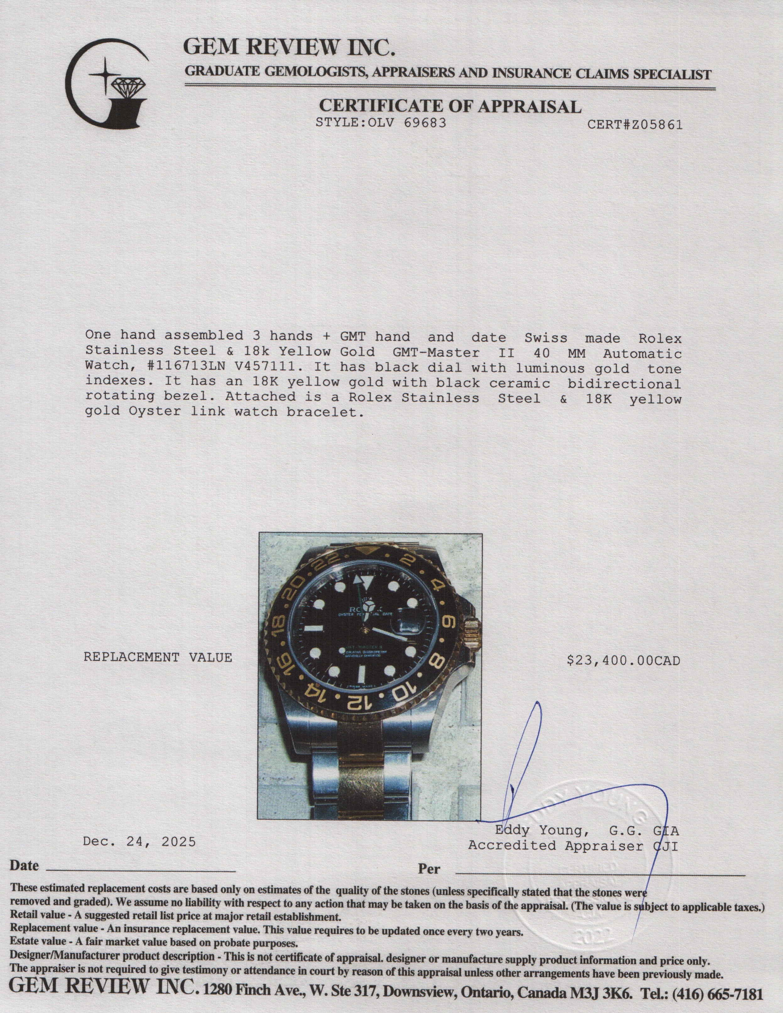 Stainless Steel & 18k Yellow Gold GMT-Master II 40 MM Automatic Watch 116713LN w/ Box & Papers