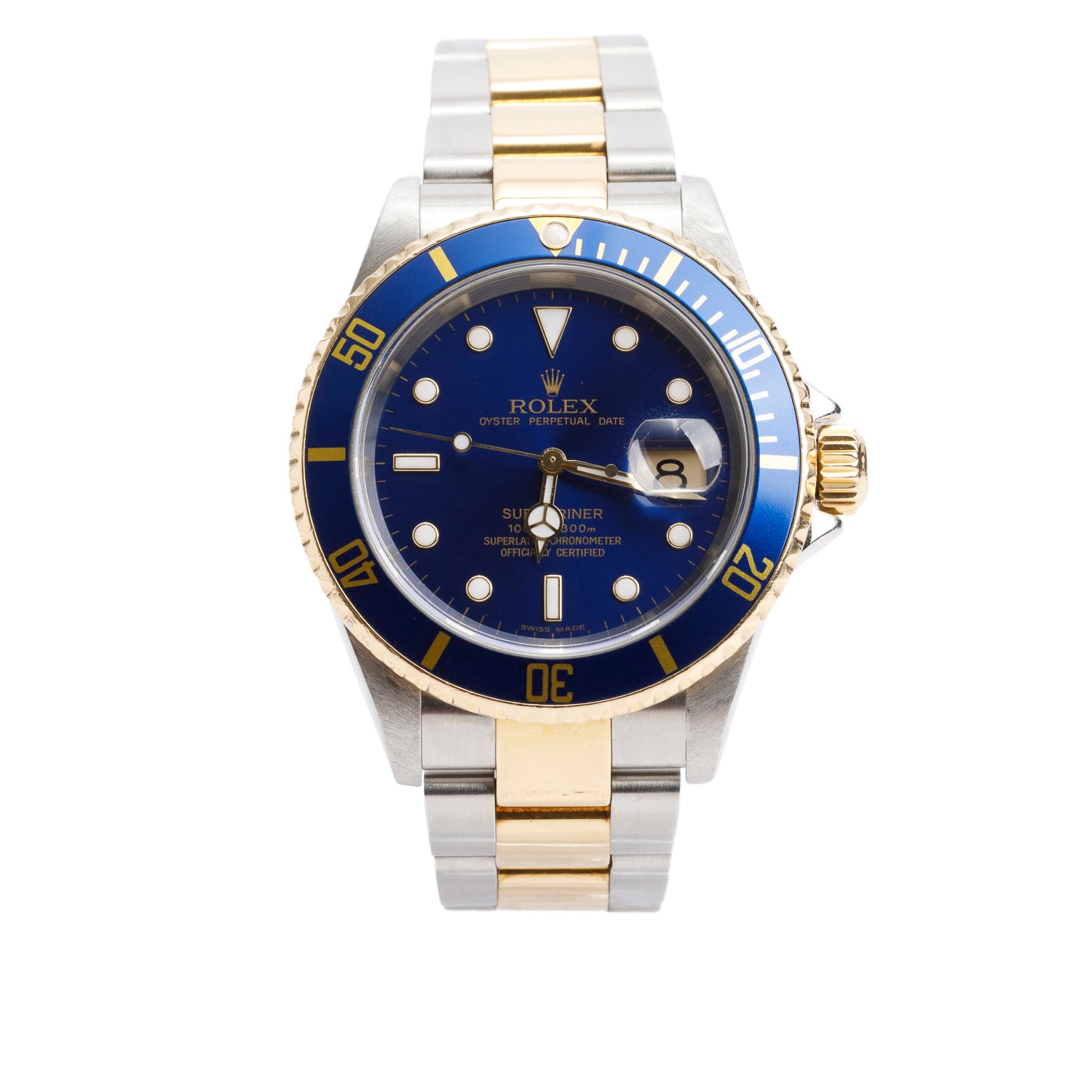 Stainless Steel & 18k Yellow Gold Submariner Date 40 MM Automatic Watch Blue Dial 16613 w/ Box & Service Paper