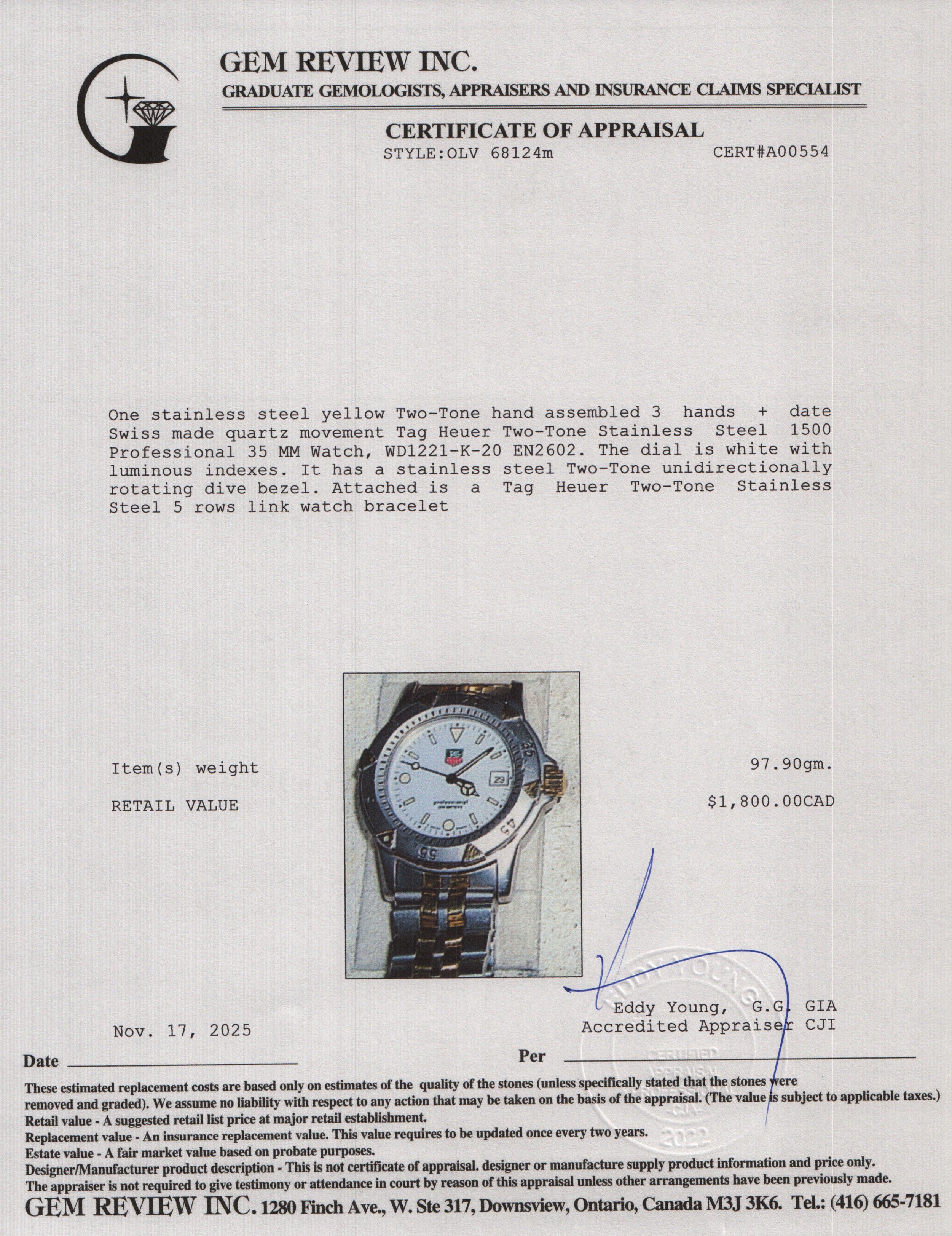Two-Tone Stainless Steel 1500 Professional 35 MM Watch White Dial WD1221-K-20