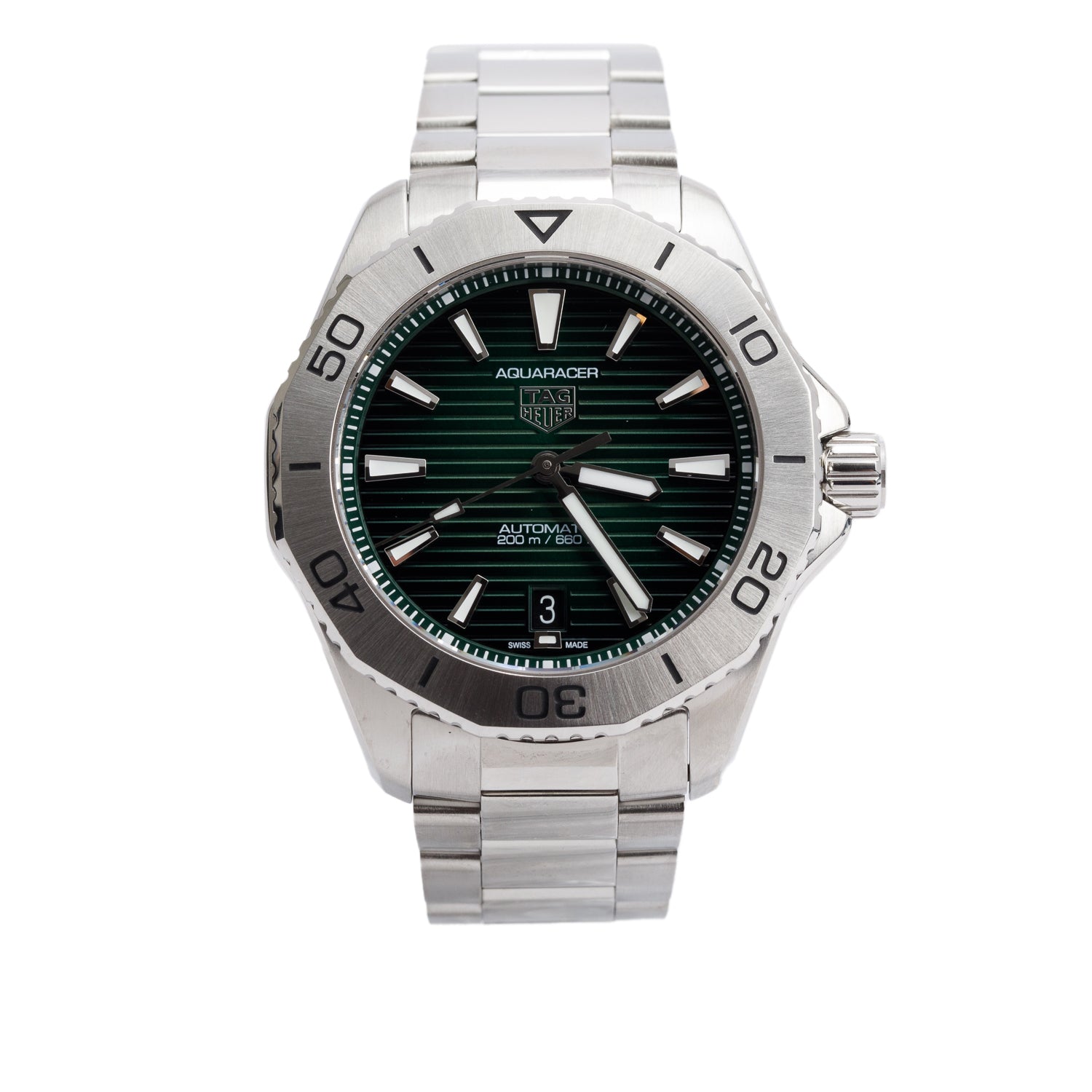 Stainless Steel Aquaracer Professional 200 Date 40 MM Automatic Watch Green Dial WBP2115 w/ Box & Papers