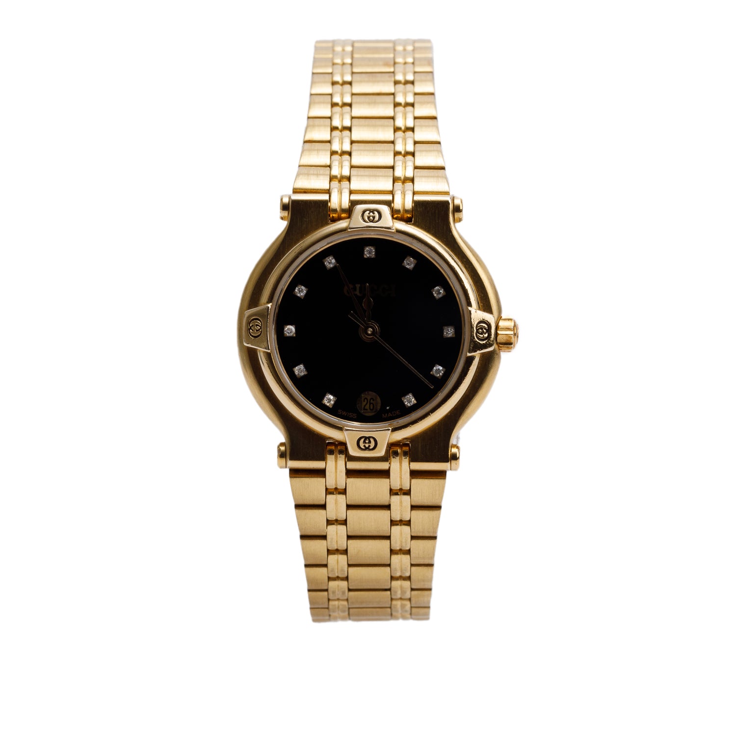 Gold-Plated Stainless Steel 9200 Series 25 MM Quartz Watch Black Diamond Dial