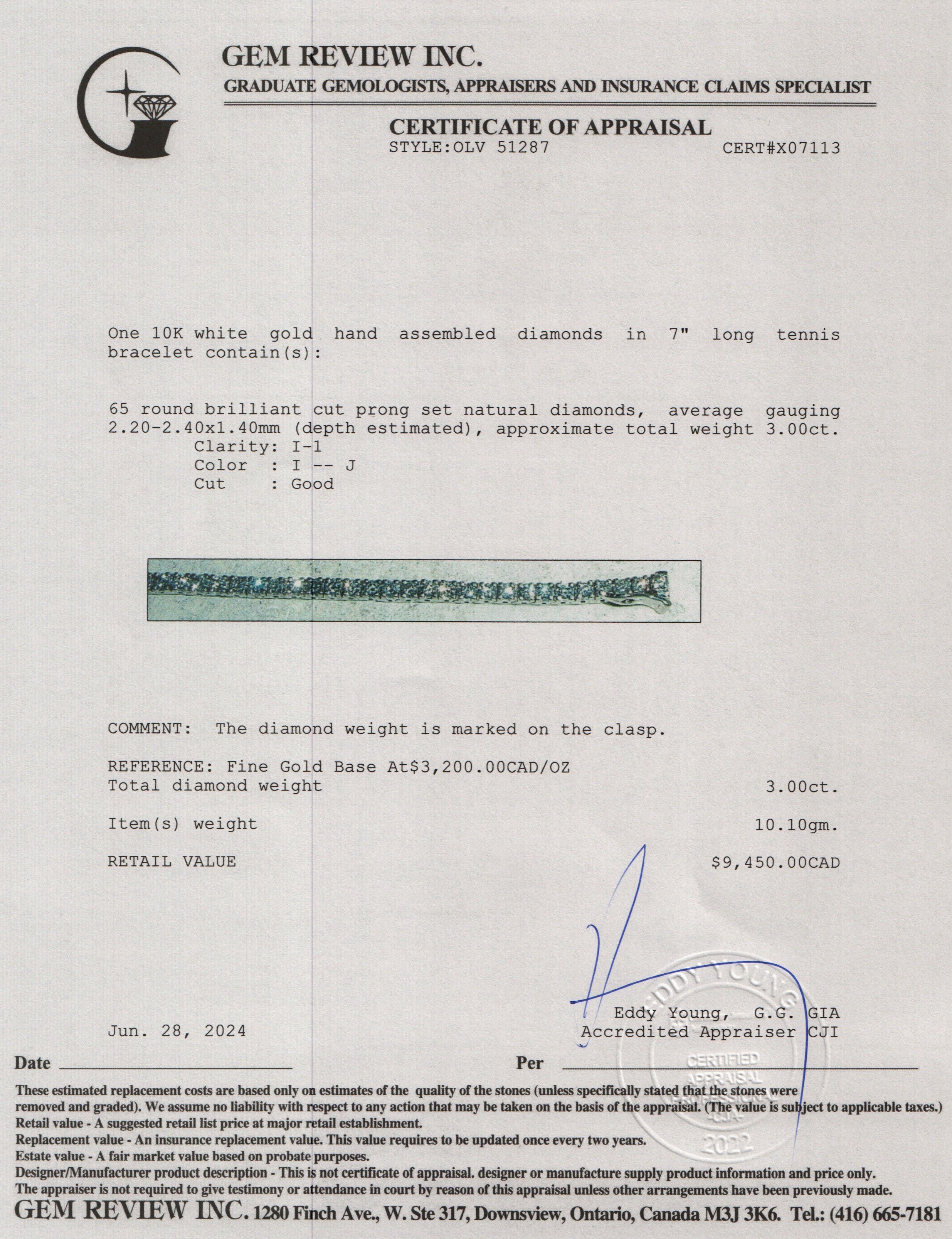 10k White Gold 3.00 tcw. Diamond Tennis Bracelet