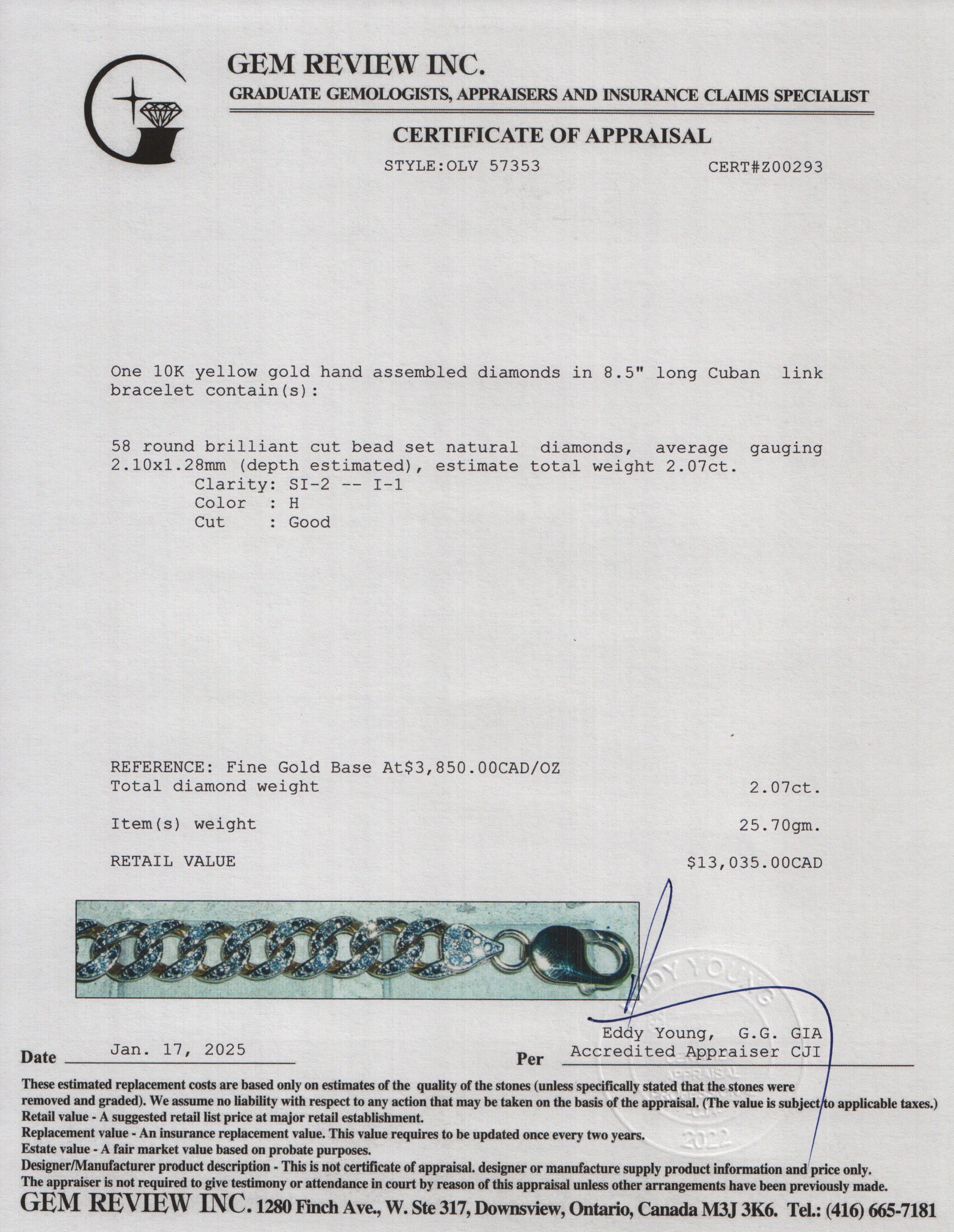 10k Yellow Gold Pave Diamond Cuban Link Bracelet