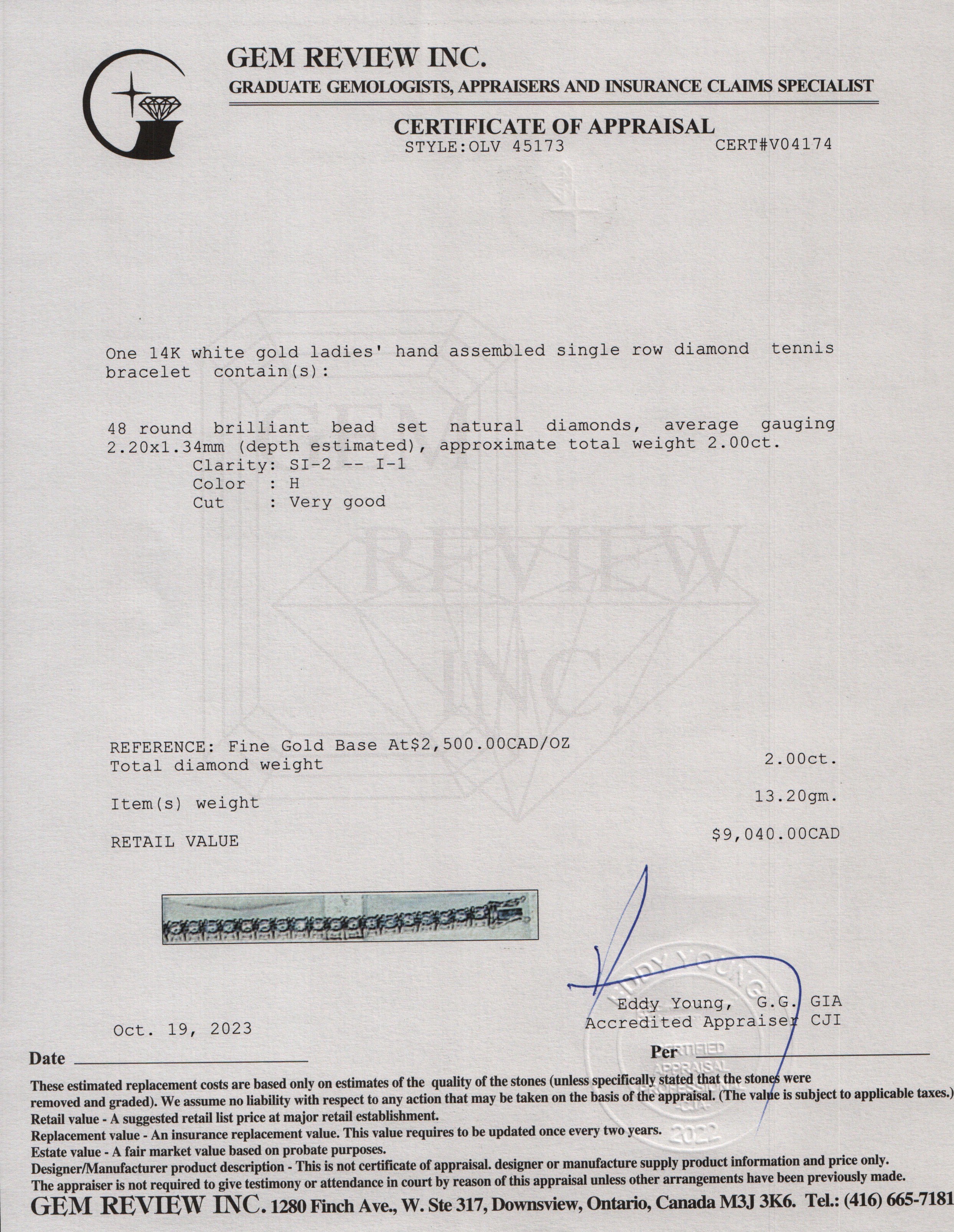 14k White Gold 2.00 tcw. Diamond Tennis Bracelet