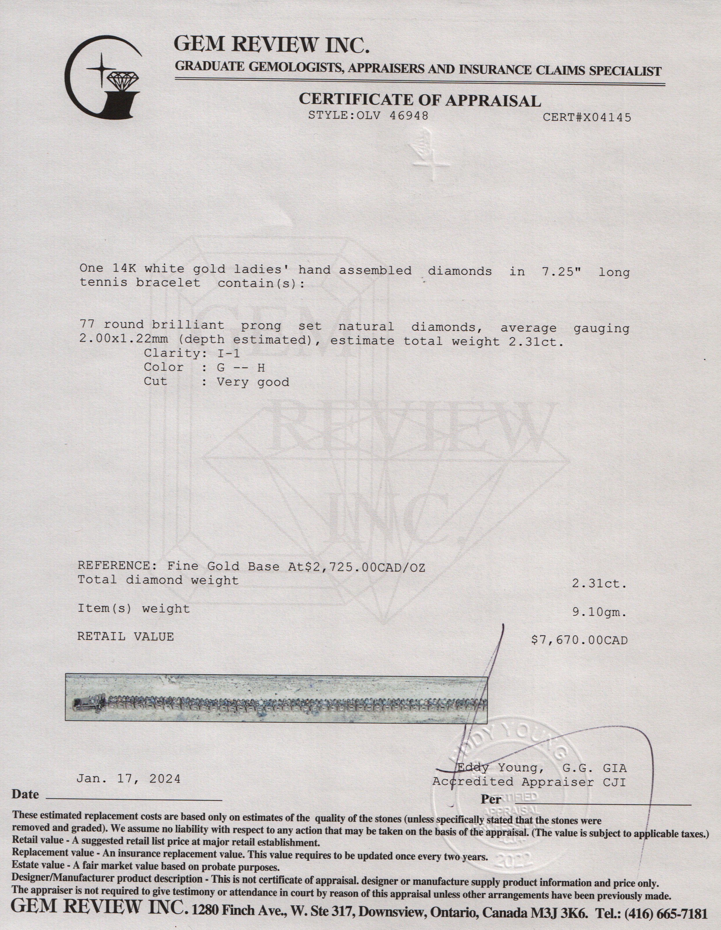14k White Gold 2.31 tcw Diamond Tennis Bracelet