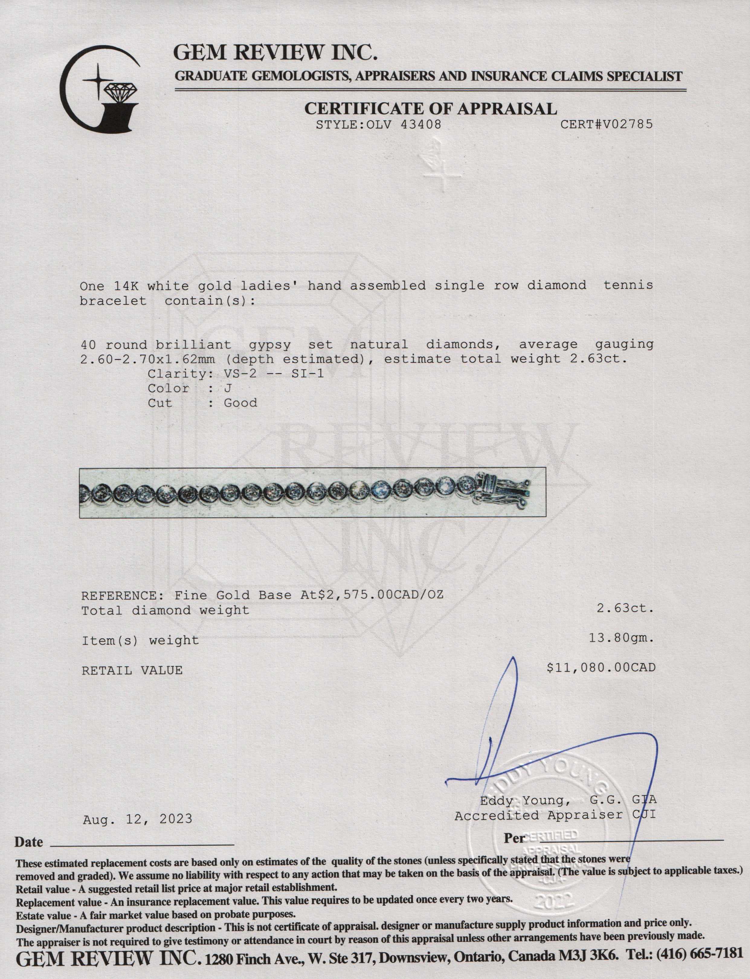 14k White Gold 2.63 tcw. Diamond Tennis Bracelet