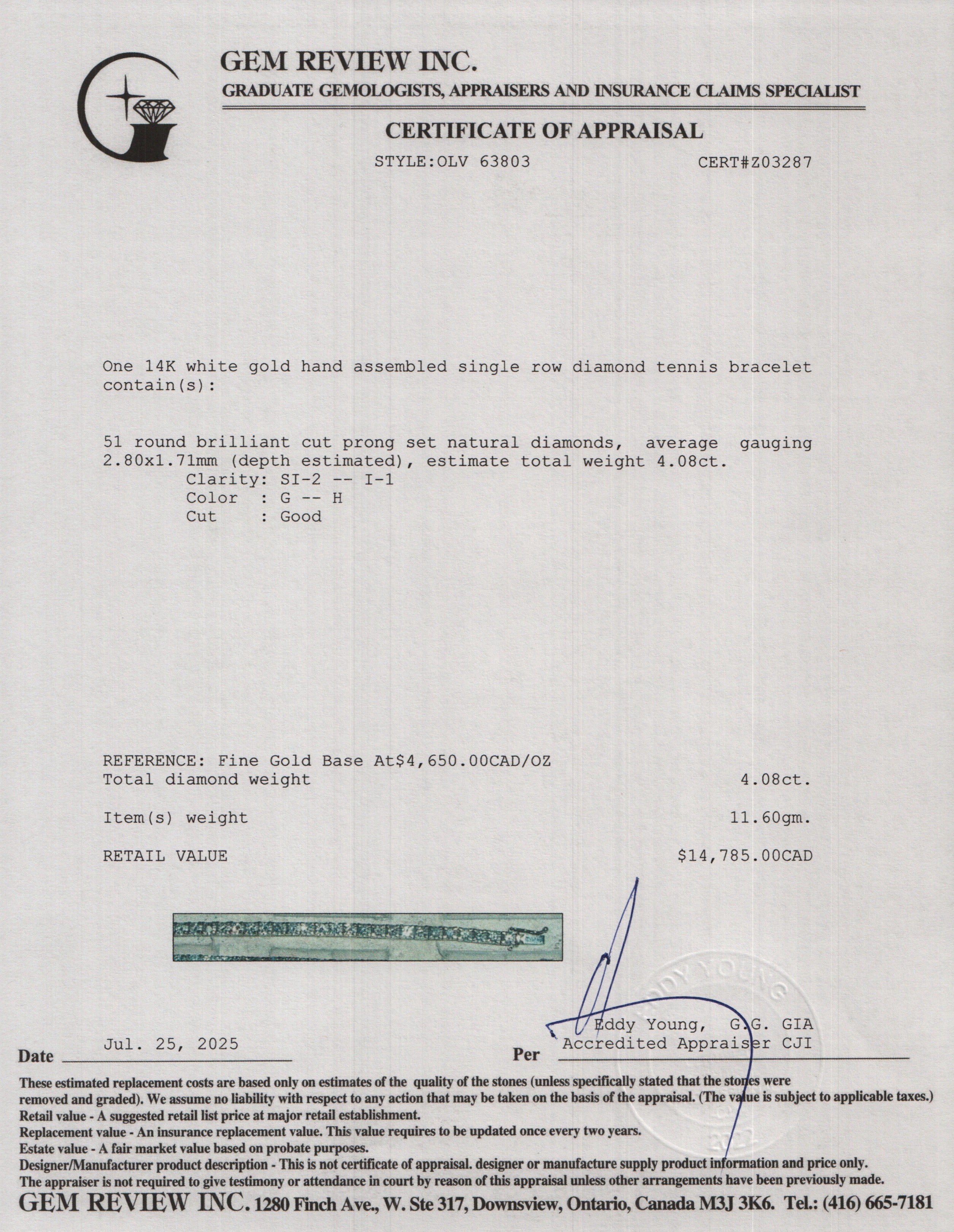 14k White Gold 4.08 tcw. Diamond Tennis Bracelet