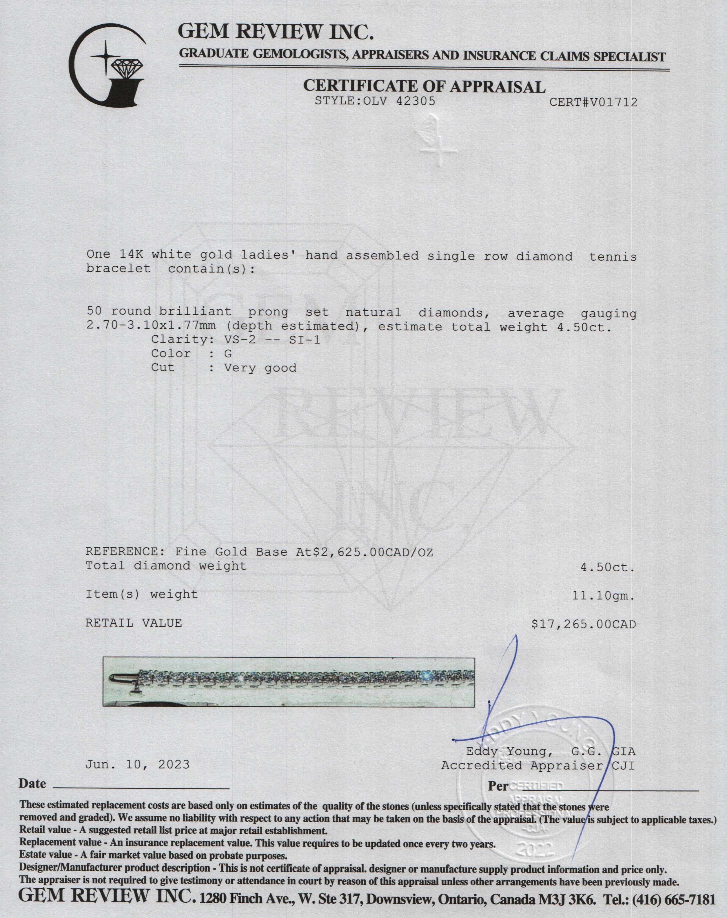 14k White Gold 4.50 tcw. Diamond Tennis Bracelet