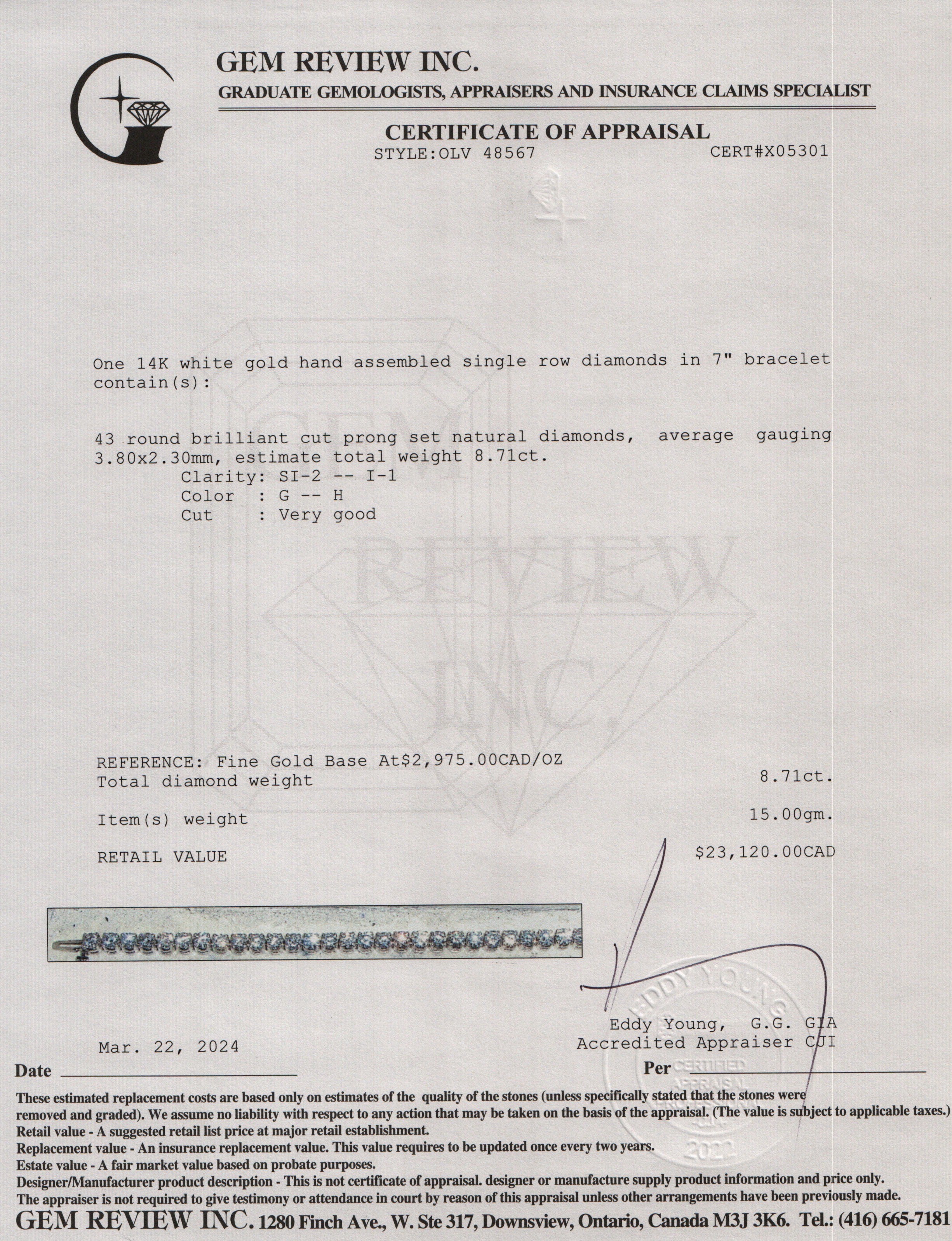 14k White Gold 8.71 tcw. Diamond Tennis Bracelet
