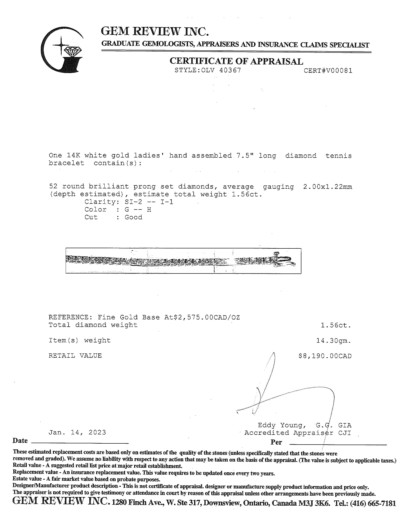 - 52 Round Brilliant Cut Diamonds Totalling Approximately 1.56 ct. of SI2-I1 Clarity, G-H Colour, Good Cut