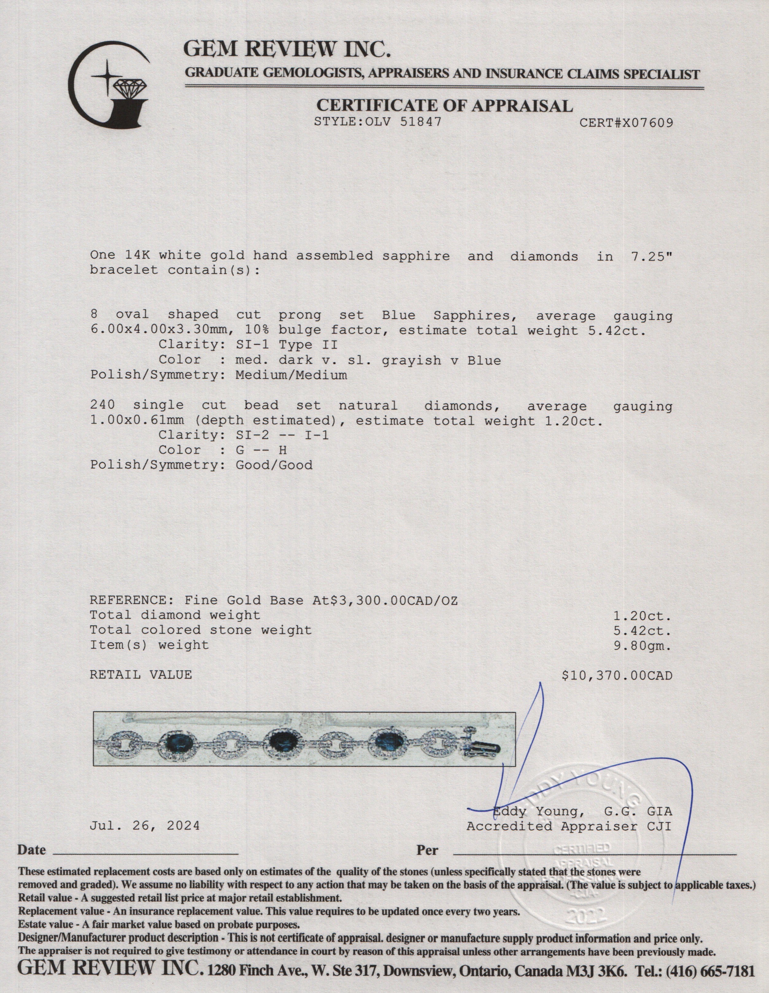 14k White Gold Sapphire & Diamond Bracelet