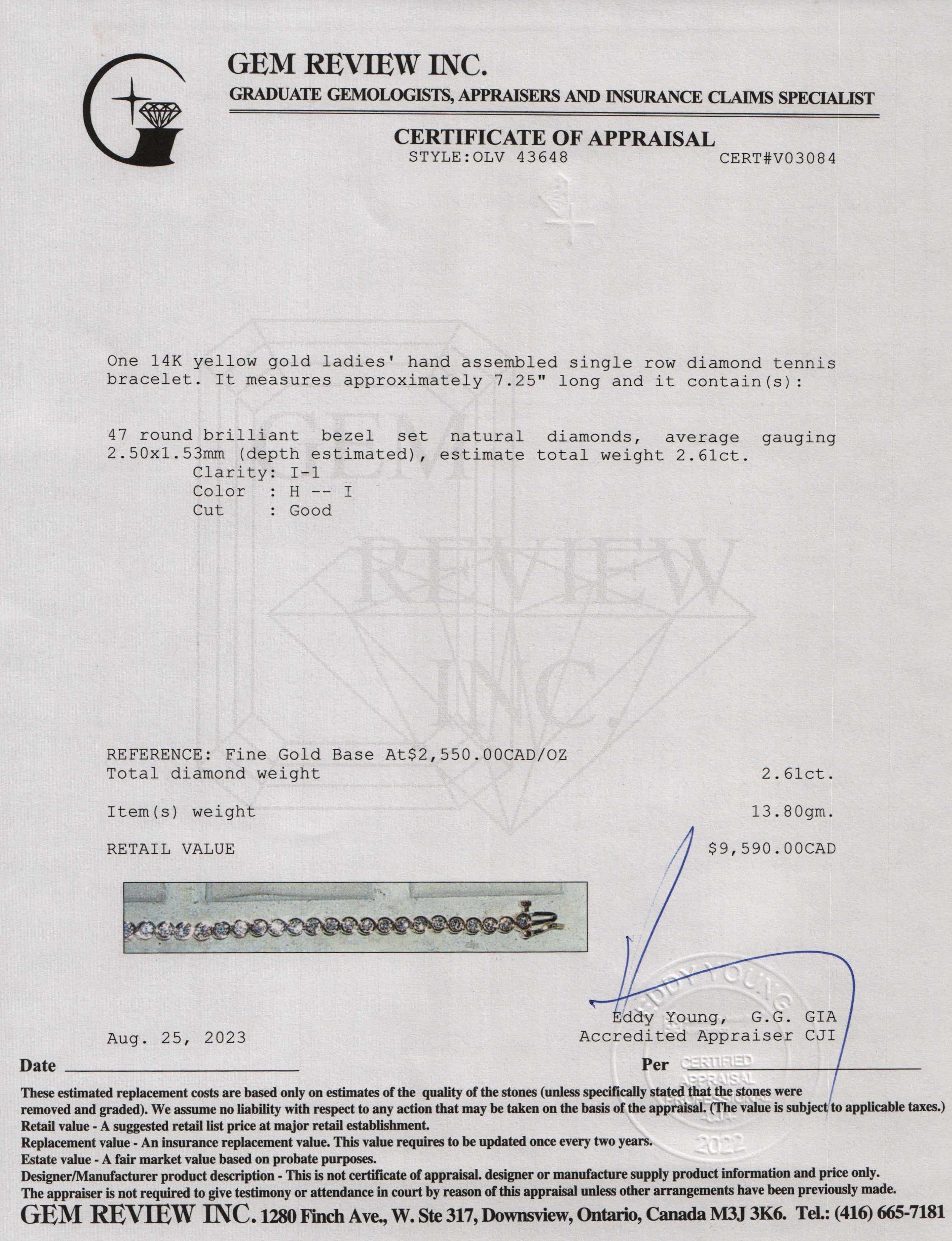 14k Yellow Gold 2.61 tcw. Diamond Tennis Bracelet