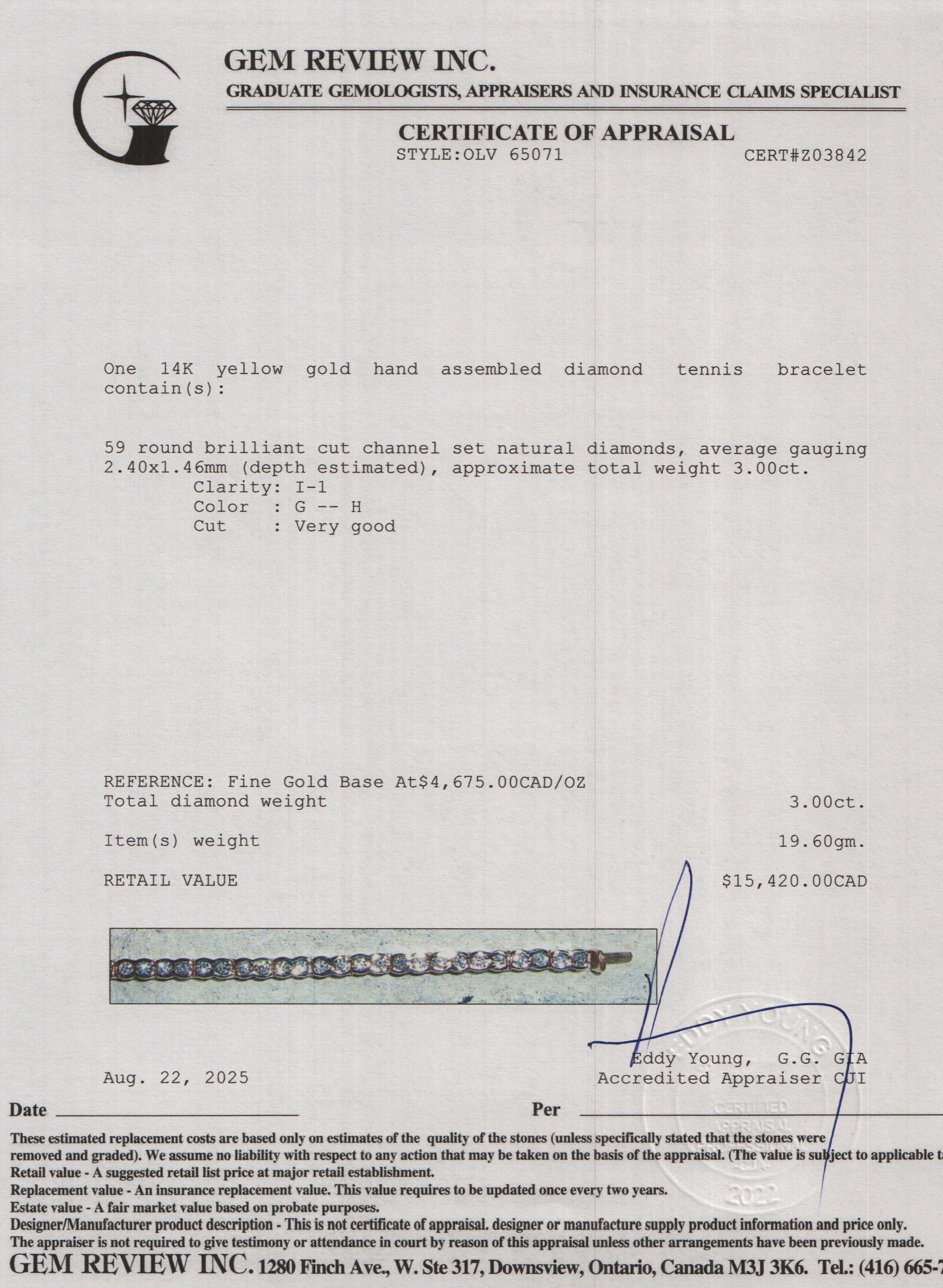 14k Yellow Gold 3.00 tcw. Diamond Tennis Bracelet