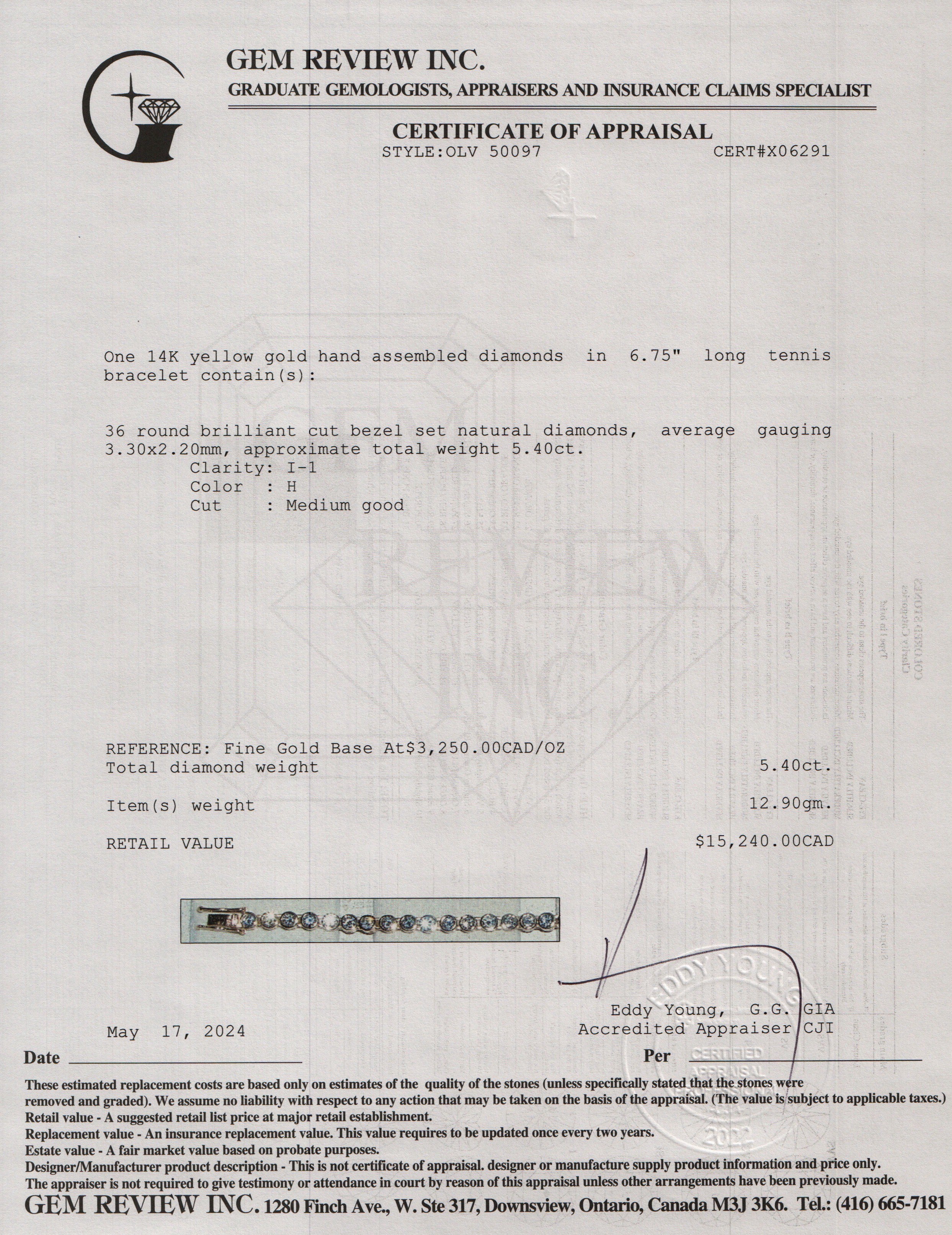 14k Yellow Gold 5.40 tcw. Diamond Tennis Bracelet