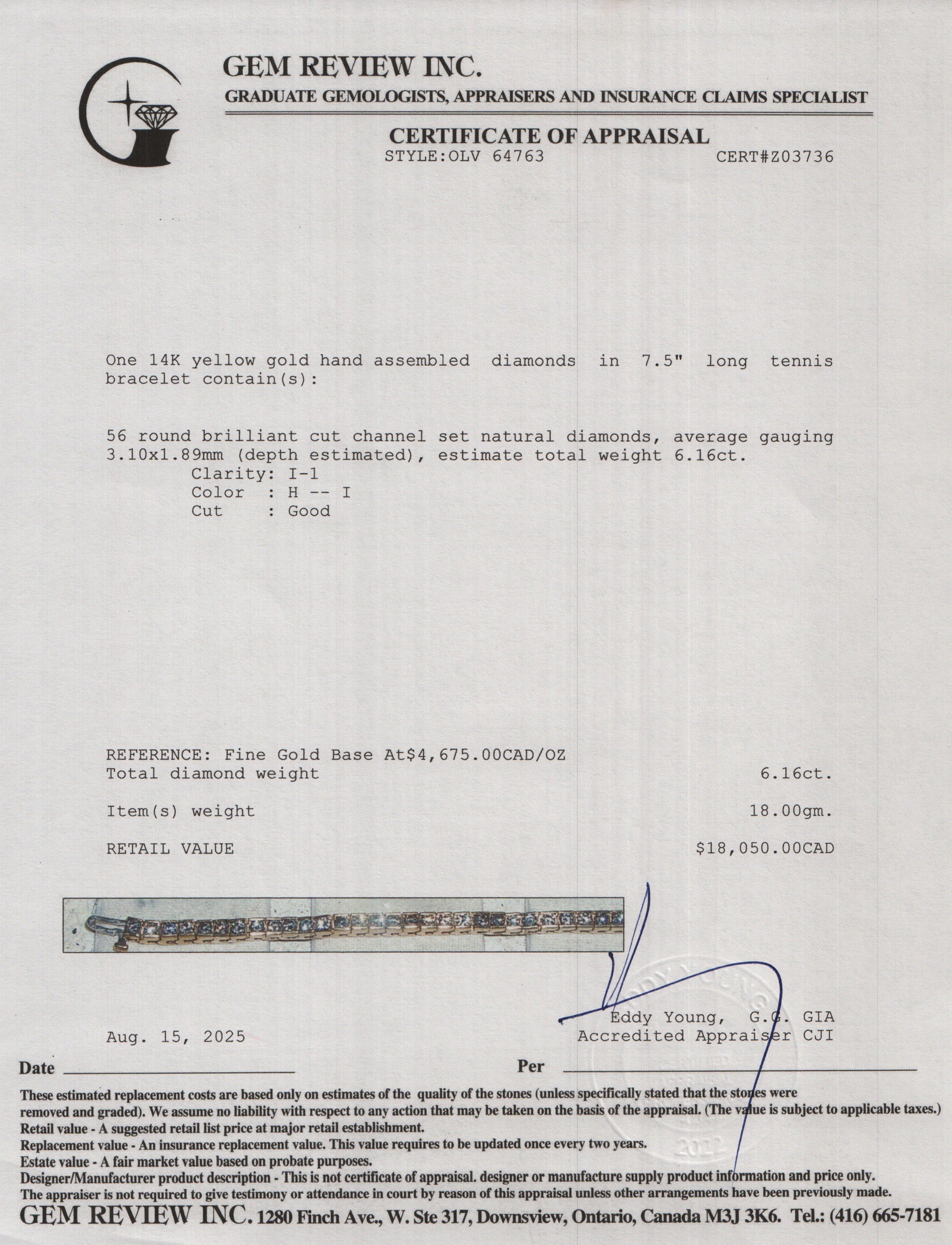 14k Yellow Gold 6.16 tcw. Diamond Tennis Bracelet
