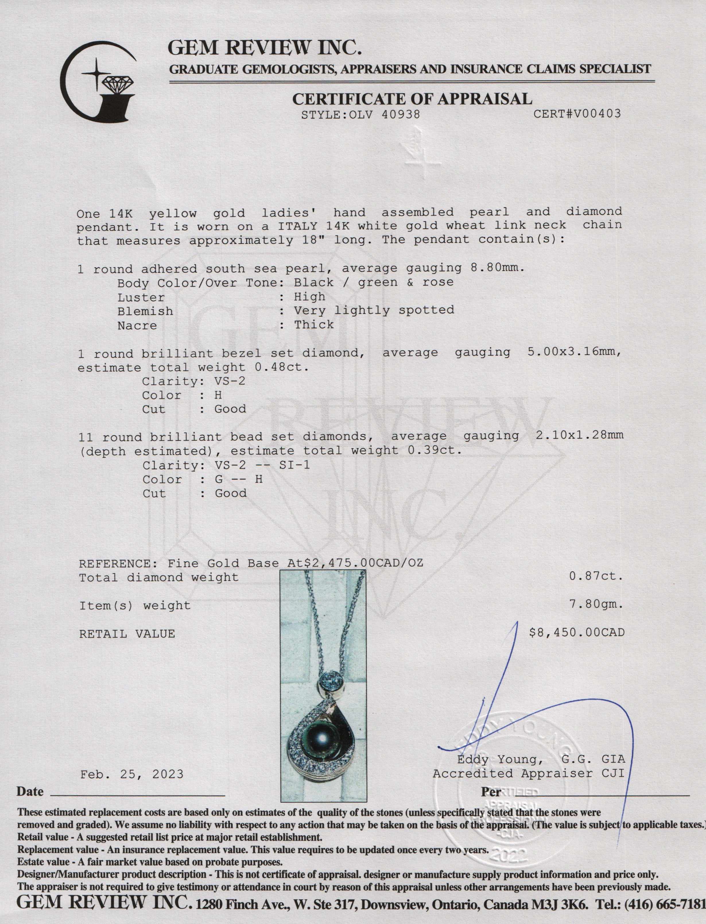 14k Yellow & White Gold South Sea Pearl & Diamond Pendant Necklace