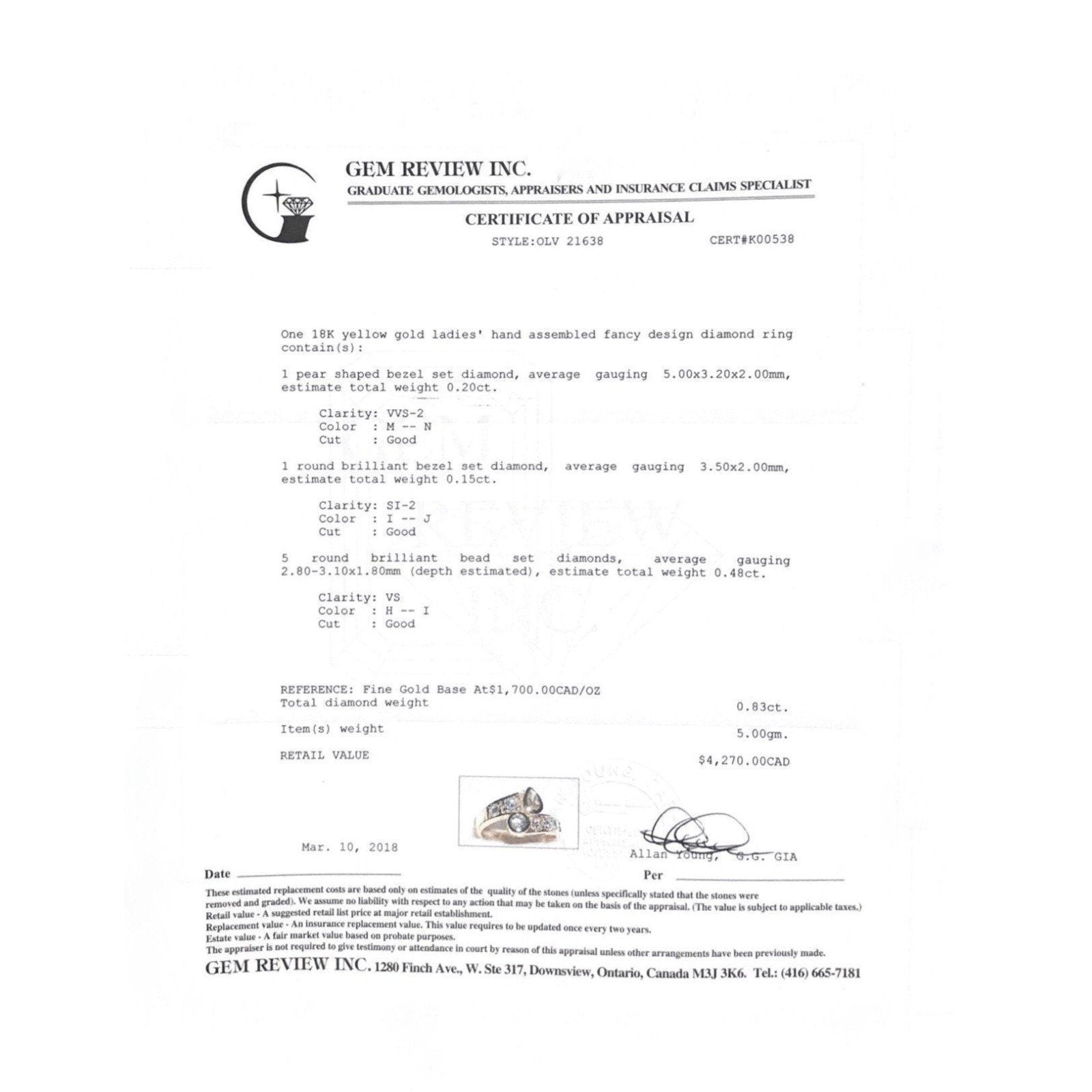 18 Karat Yellow Gold Fancy Design Diamond Ring Containing: