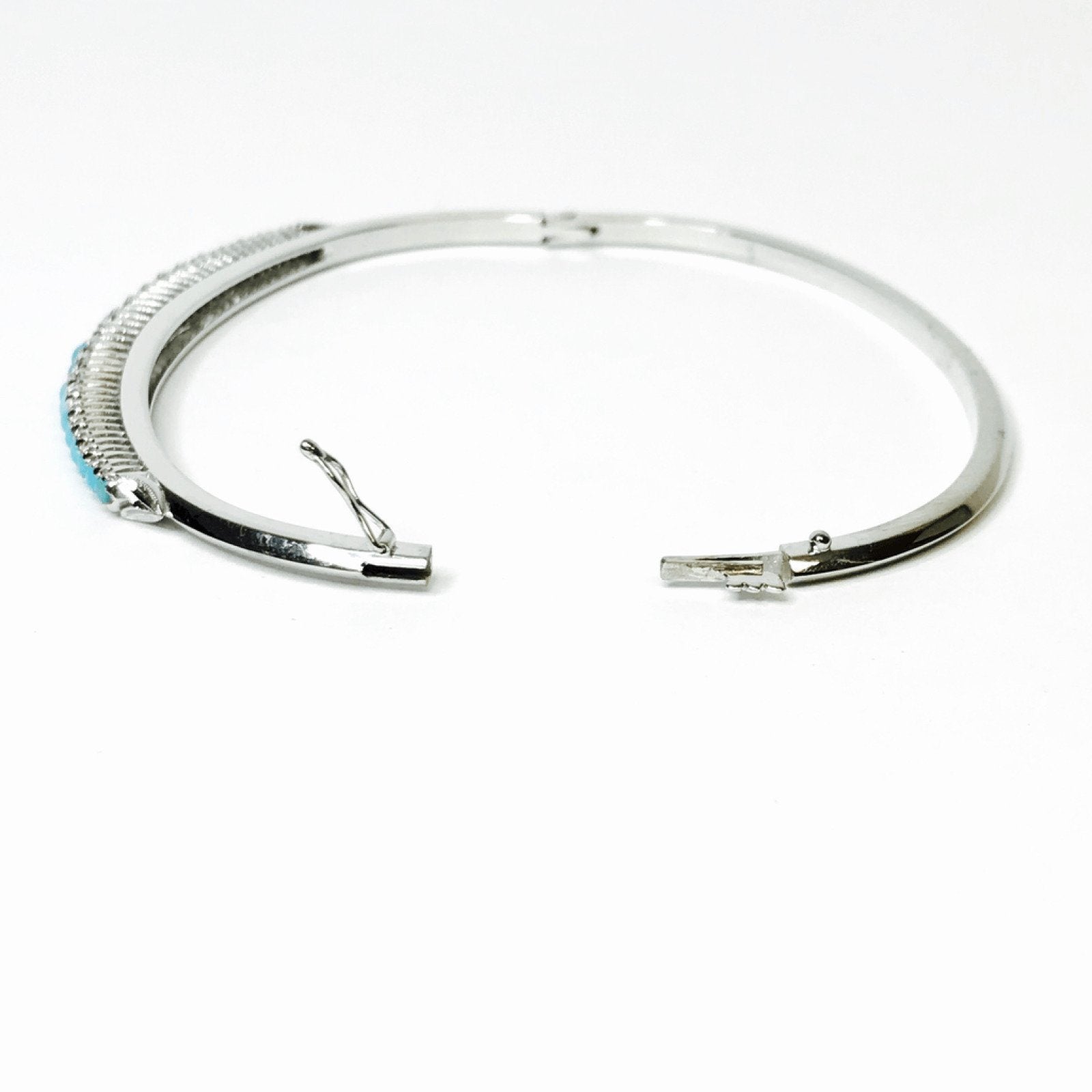 18K White Gold Diamond and Turquoise Bangle Bracelet