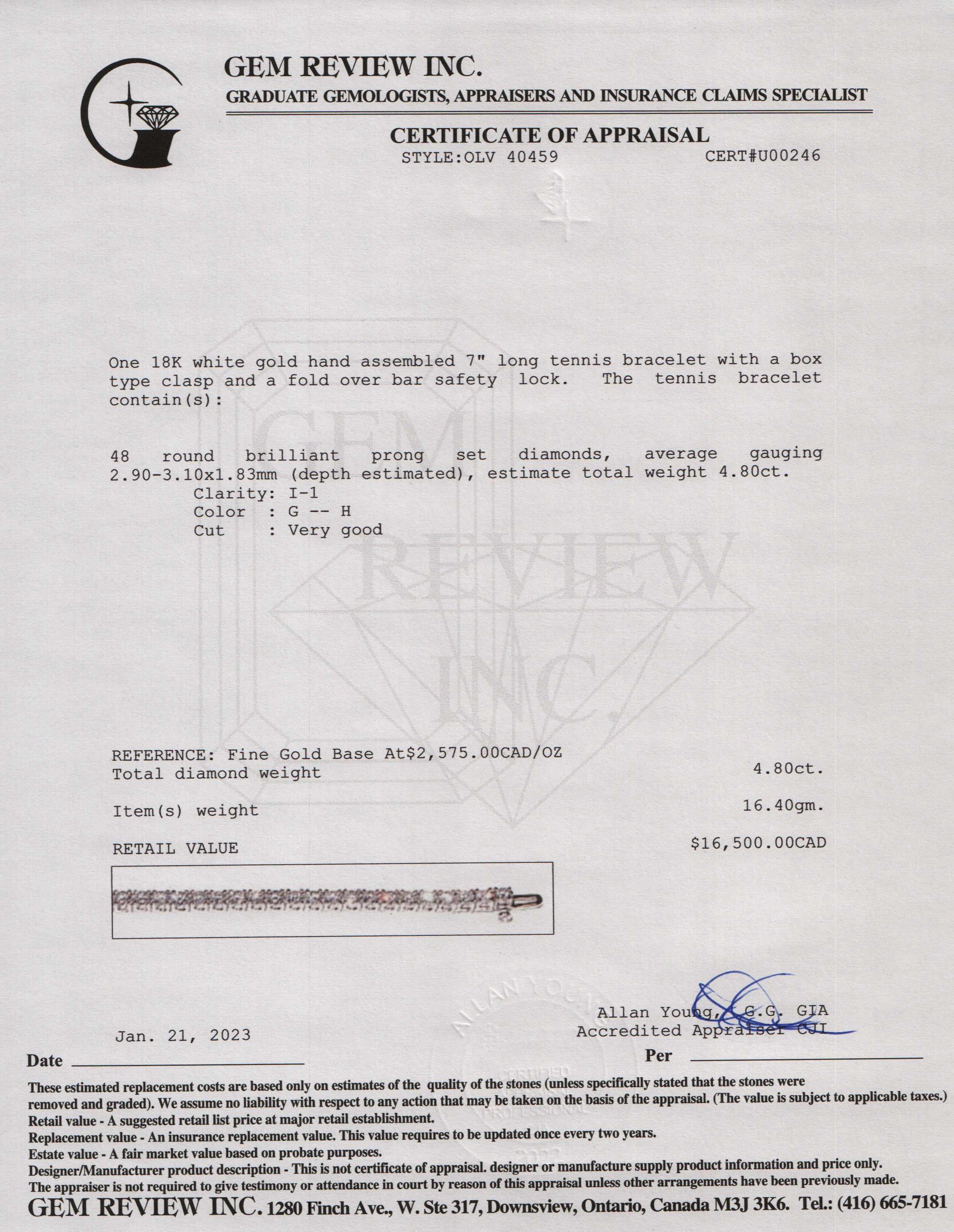 - 48 Round Brilliant Cut Diamonds Totalling Approximately 4.80 ct. of I1 Clarity, G-H Colour, Very Good Cut