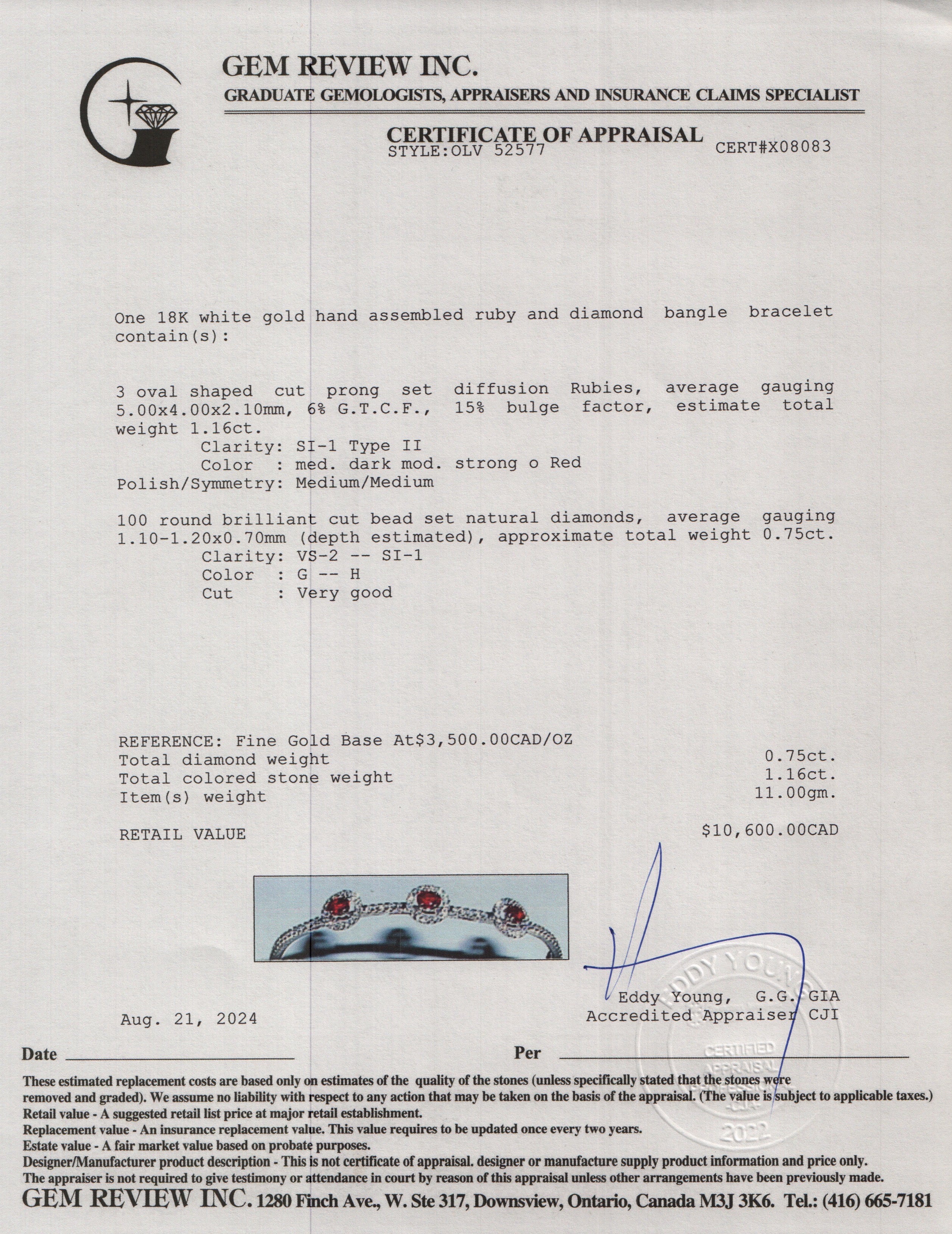 18k White Gold Ruby & Diamond Bangle Bracelet