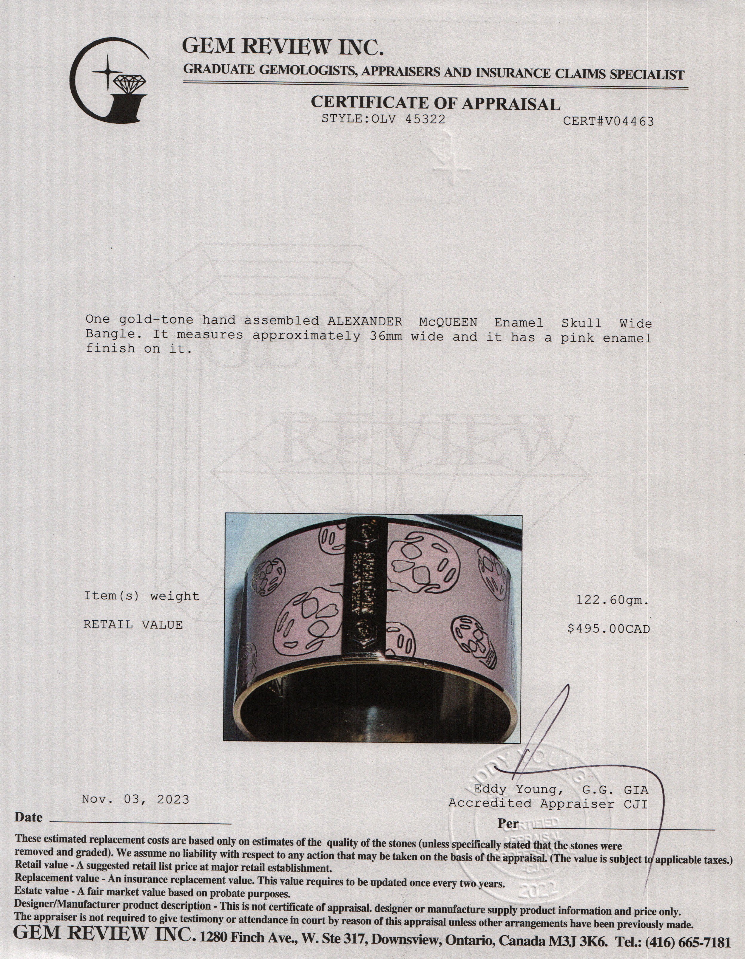Alexander Mcqueen Gold-Tone Metal Enamel Skull Wide Bangle