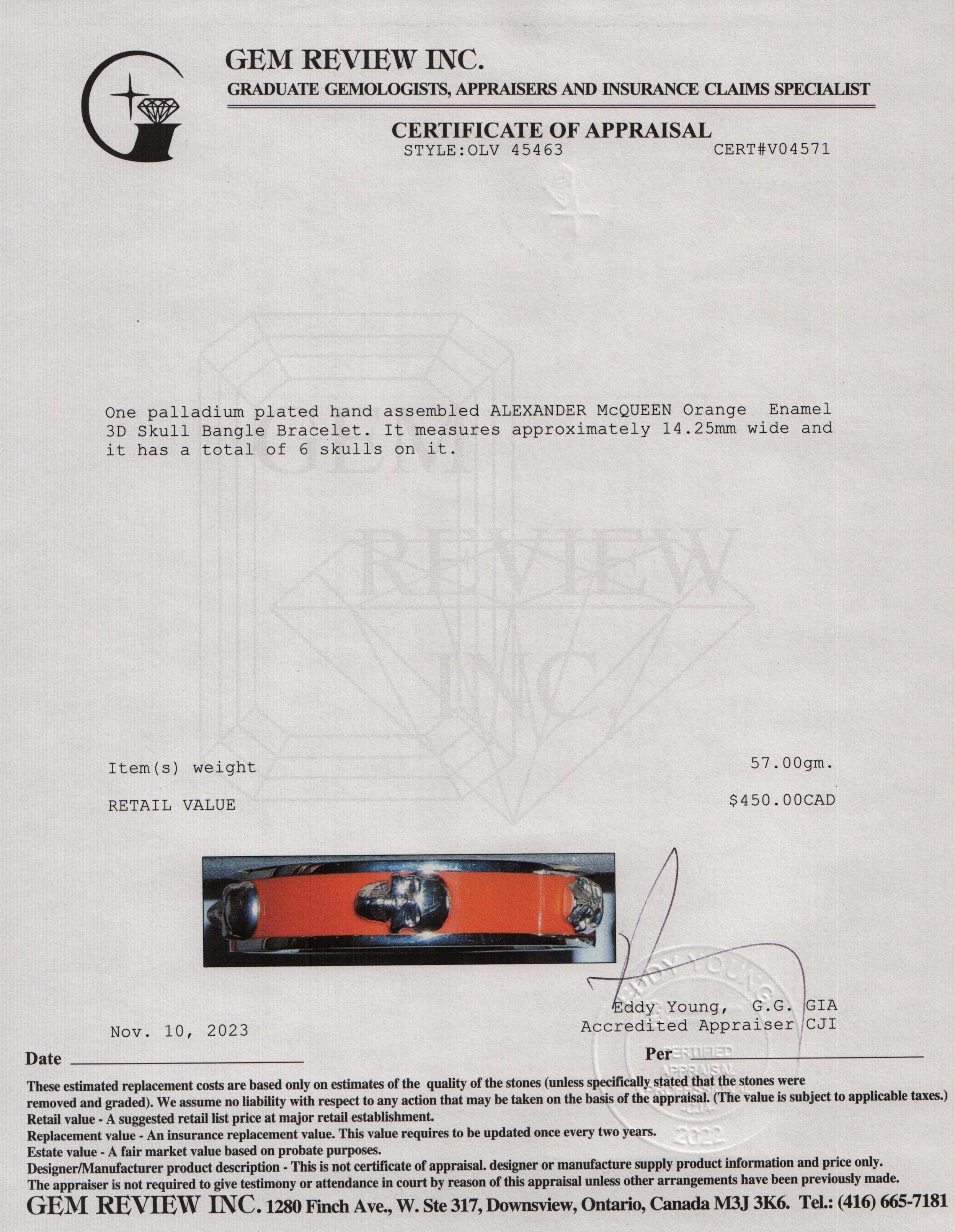 Alexander Mcqueen Palladium Plated Enamel 3D Skull Bangle Bracelet