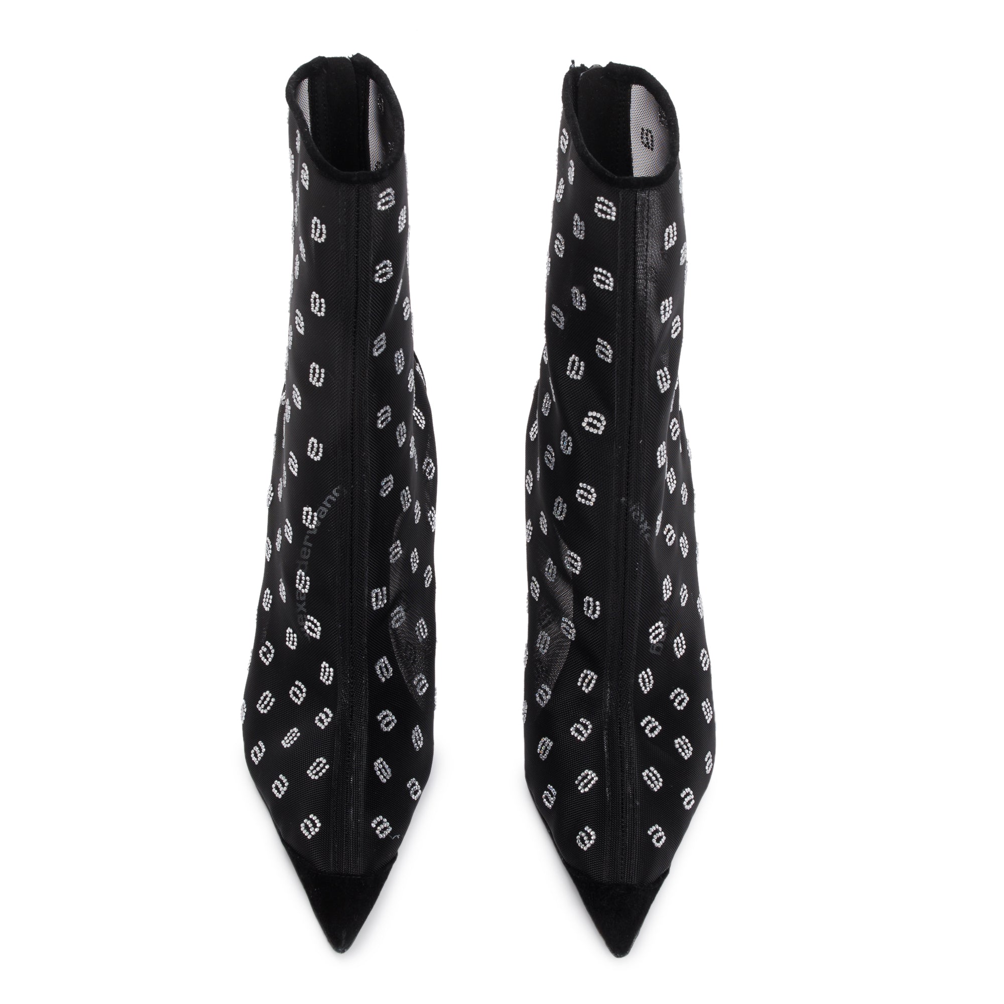 Black Suede Mesh & Crystal Delphine 105 Crystal a Boot, Size 38 w/ Box