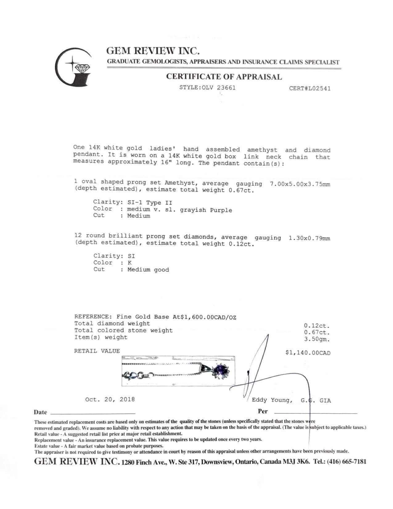 - 1 Oval Shaped Amethyst Weighing Approximately 0.67 ct.