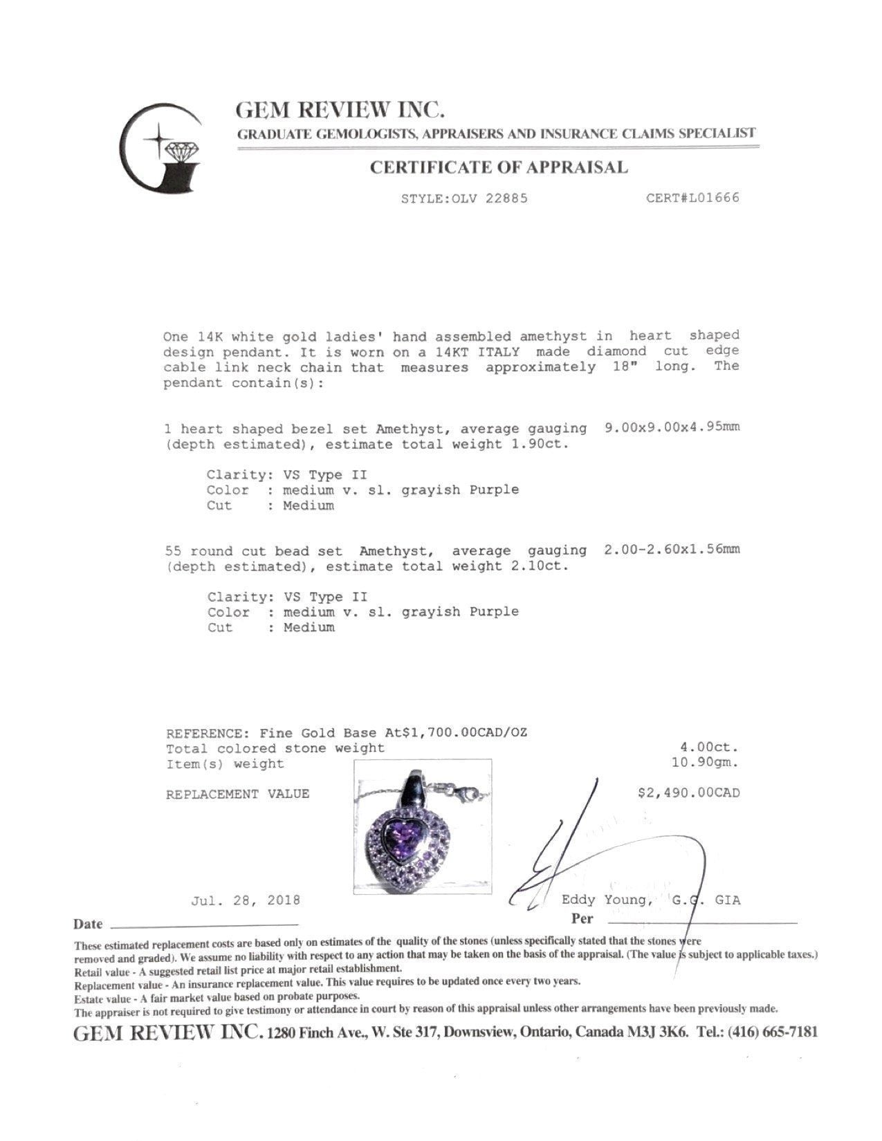 - 1 Heart Shaped Amethyst Weighing Approximately 1.90 ct.
