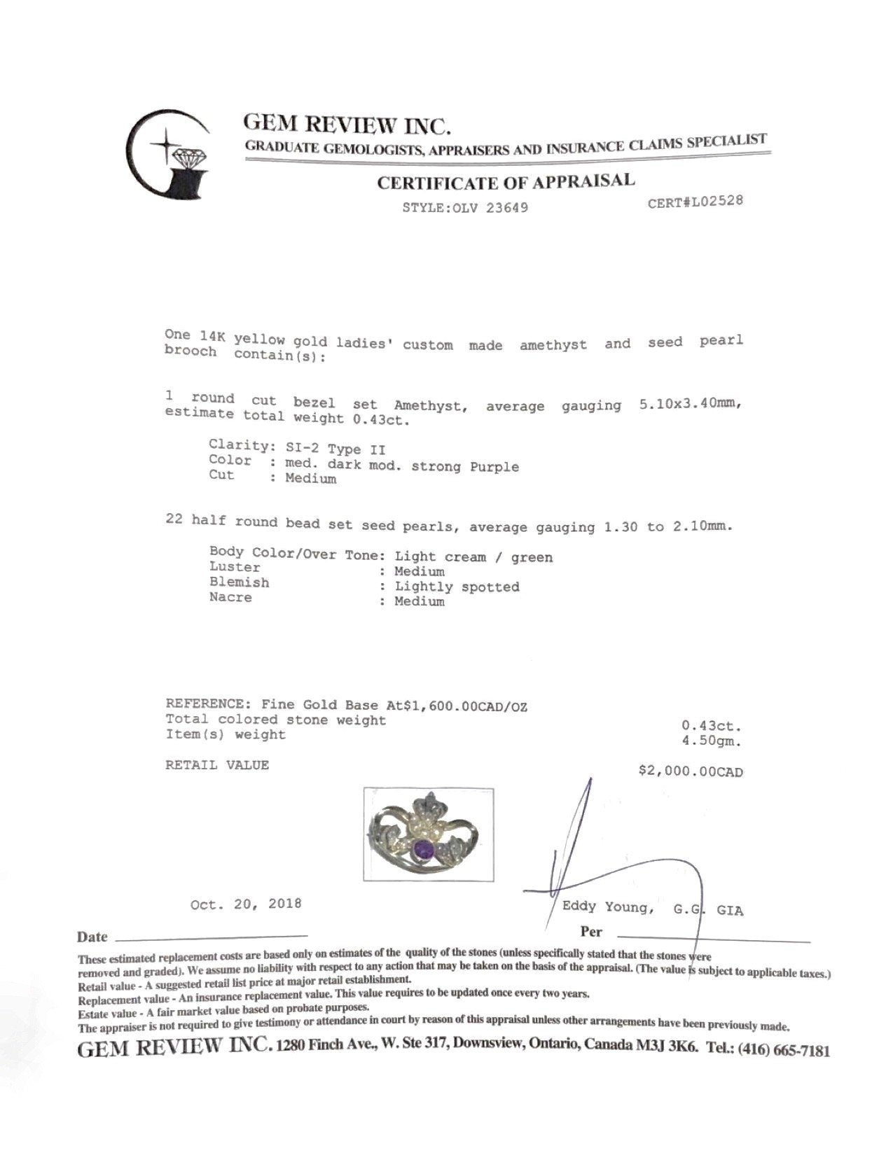 - 1 Round Cut Amethyst Weighing Approximately 0.43 ct.